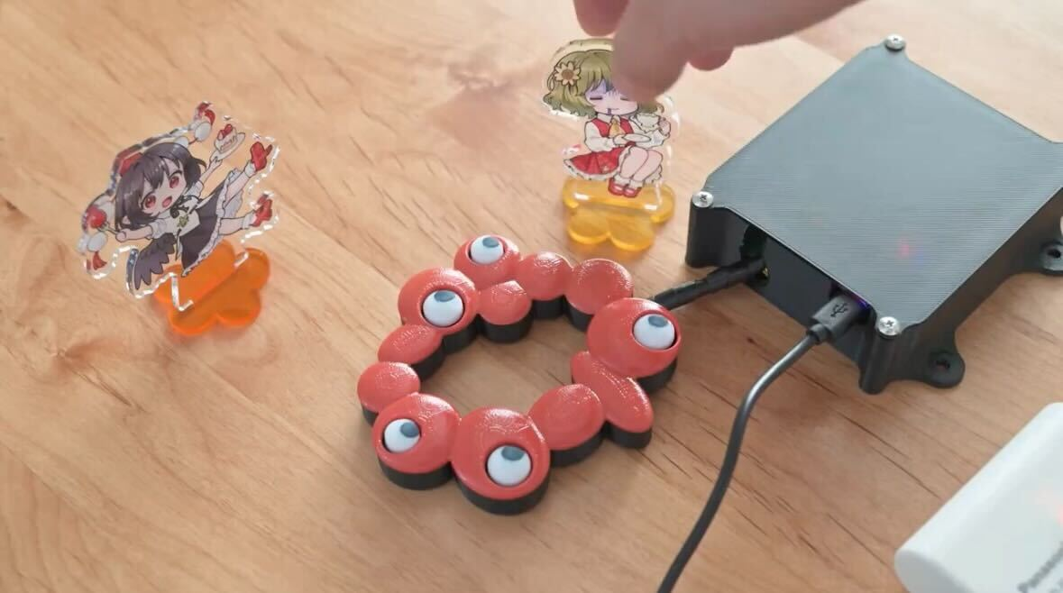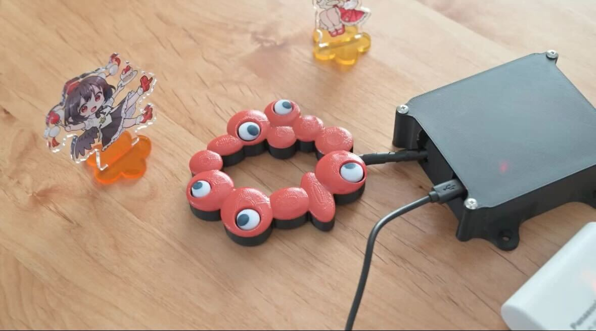 推主水橋ゆっきー(@mizuhasi_yukkie)近期製作了一個很符合博覽會主題但又很詭異的東西,他做出了「脈脈」的機器人,或該說只做出「生命的光輝」的部分,而生命的光輝要運作首先要有「生命維持裝置」,其實就是行動電源,街上維持裝置後,其眼球會根據陀螺儀感應器的運作開始擺動。