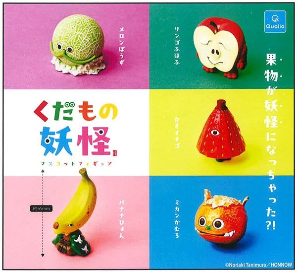 日本轉蛋玩具廠牌 Qualia 在與日本藝術家「谷村 紀明 (Noriaki Tanimura) 」攜手合作、打造出美味又獨特的「天婦羅妖怪」與「天婦羅妖怪2」之後,又將在本(9)月推出轉蛋新作「水果妖怪」(くだもの妖怪)!每轉 500 日幣。