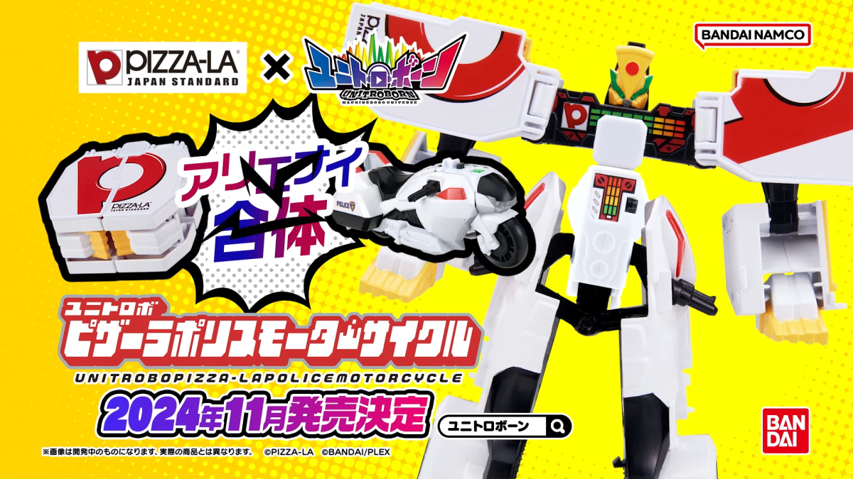 由日本萬代玩具公司所發行的變形合體機器人玩具『UNITROBORN』系列,發表了與日本 FOUR SEEDS 公司旗下知名外送披薩連鎖店『PIZZA-LA』合作的最新商品「UNITROBO PIZZA-LA警用摩托車」預計於 2024 年 11 月發售的消息。