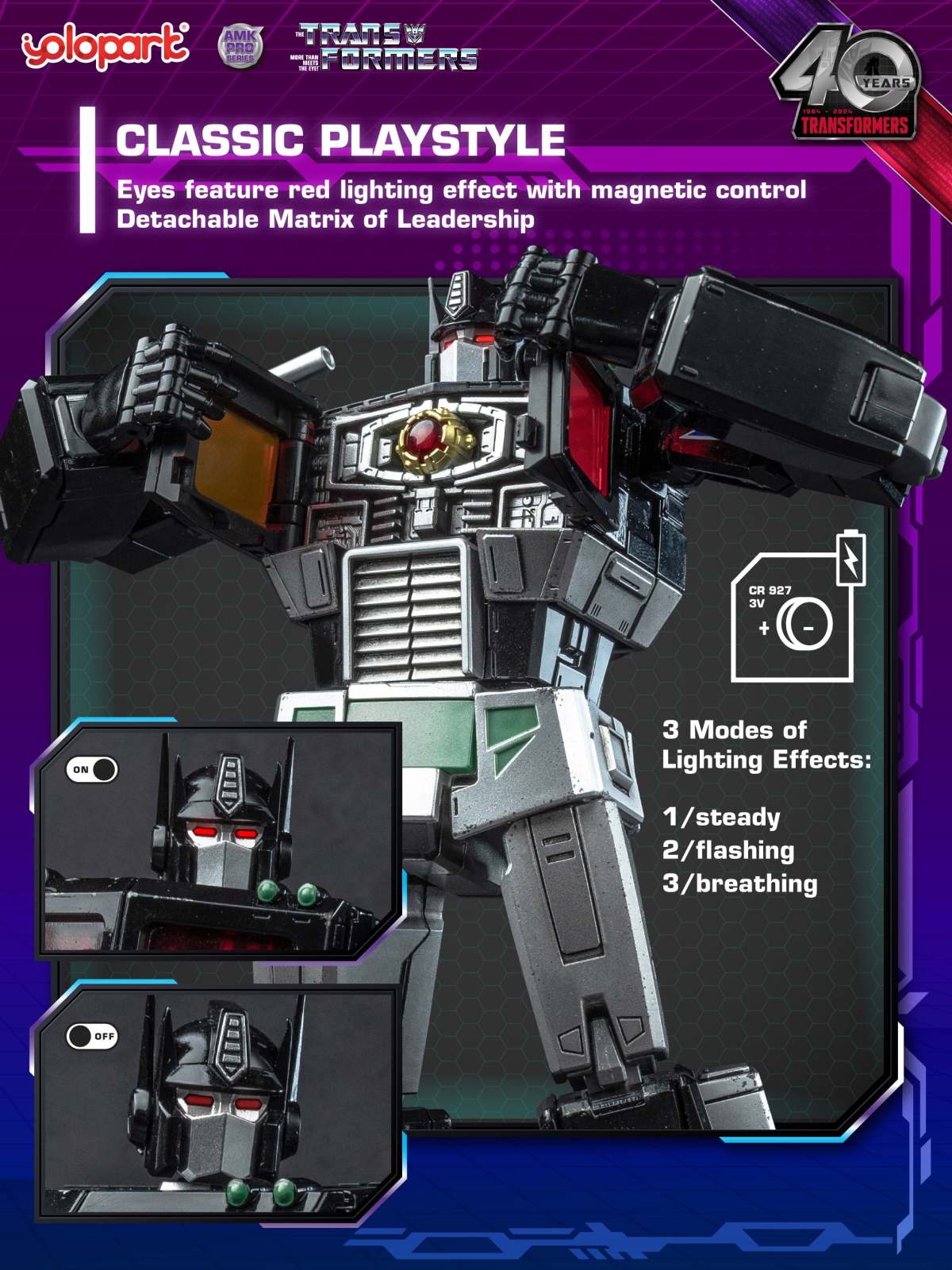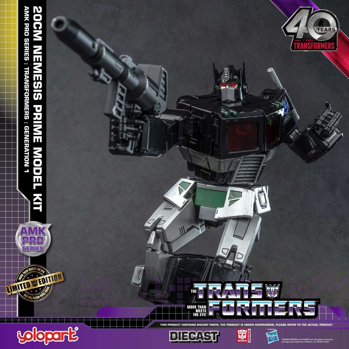 香港模型廠牌 YOLOPARK 旗下部分採用合金打造的高品質預塗裝組裝模型「AMK PRO」系列日前在各大展場展示搶先預購的《變形金剛》經典動畫版主題商品——「暗黑柯柏文」(Nemesis Prime)預塗裝合金組裝模型,近日公開了正式開放預購的消息,參考售價為 49.99 美元,預計於 2024 年 10 月發售!