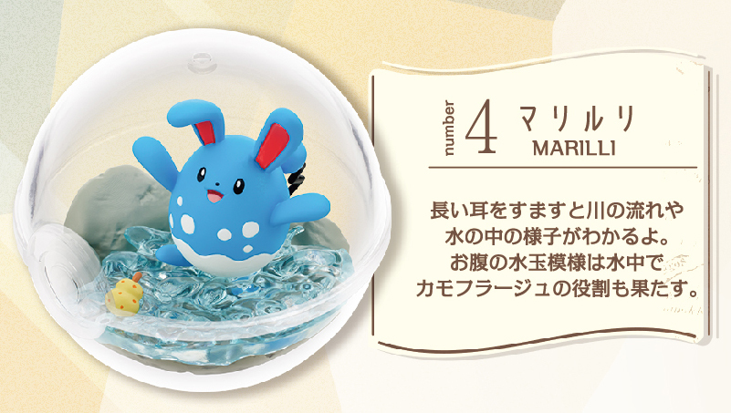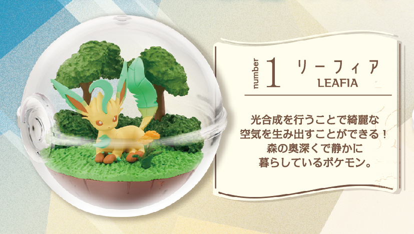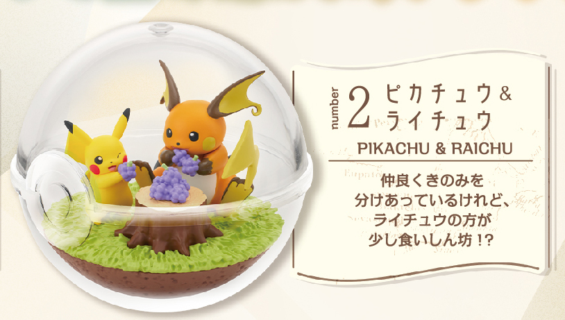 以精靈球造型玻璃盆景(Terrarium)形式自成一格的大人氣收藏系列「玻璃盆景收藏」,不只呈現出寶可夢們在各種環境的生活樣貌,更發揮 RE-MENT 一貫的優勢在迷你尺寸中製作出細緻的寶可夢棲息地,呈現出一球一世界的視覺效果,漂亮又富含趣味!更激起我們對於精靈球當中的想像。