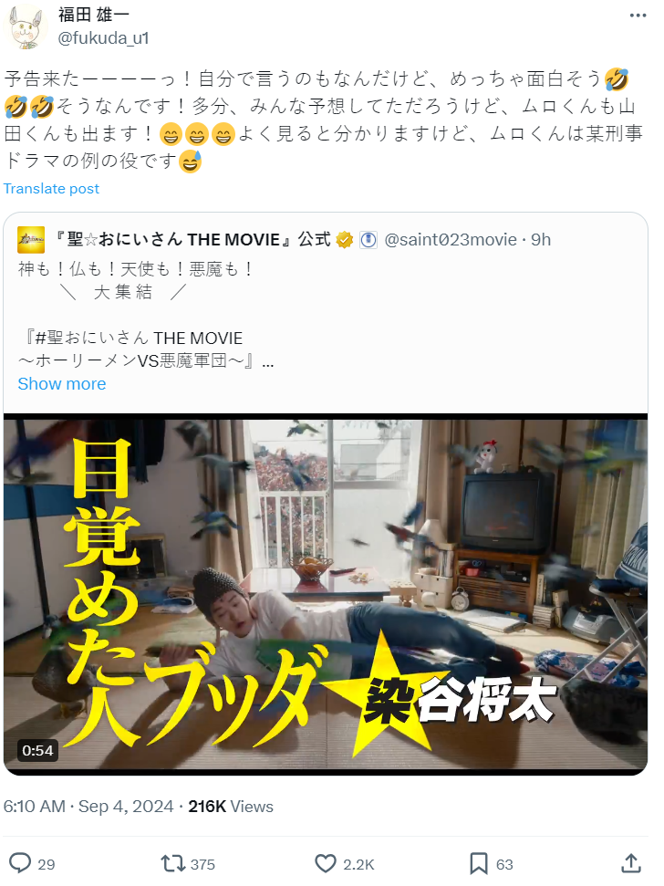雖然官方還沒正式公開,但福田導演已經在個人 X 上表示,很多人在猜測的山田孝之 & 室剛(ムロツヨシ)確定匯出眼,當然「福田組」兩位絕對不會缺席,雖說不知道演出角色,但想必搞笑程度是可以想像的 XD。