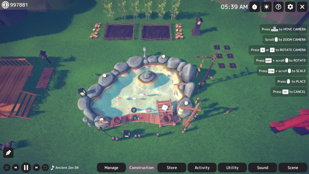 本作讓玩家從頭開始打造自己的溫泉空間,提供各式各樣的大小物品讓玩家擺設。另外,玩家還可以調整背景音樂、天氣等要素,讓這座虛擬溫泉能夠盡可能符合自己的想像與需求。