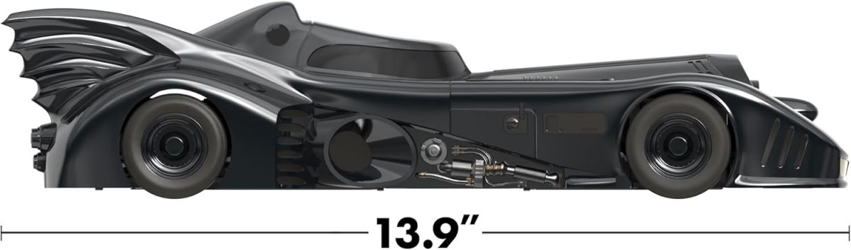 三十幾年過去了,在 1989 年《蝙蝠俠》電影中由基頓版蝙蝠俠所駕駛的那輛蝙蝠車,直到現在依舊是許多老派玩具人心中最喜歡、最經典的一台。這次在 Super Cyborg 系列立體化的蝙蝠車長度來到 35.3 公分、寬度則是 12.7 公分,依照電影設定考究還原拉風的車體線條、車頭的渦輪風扇、車身後段的雙蝙蝠翼,車輪也能夠實際轉動,光是擺著展示就是一個帥到不行的存在。