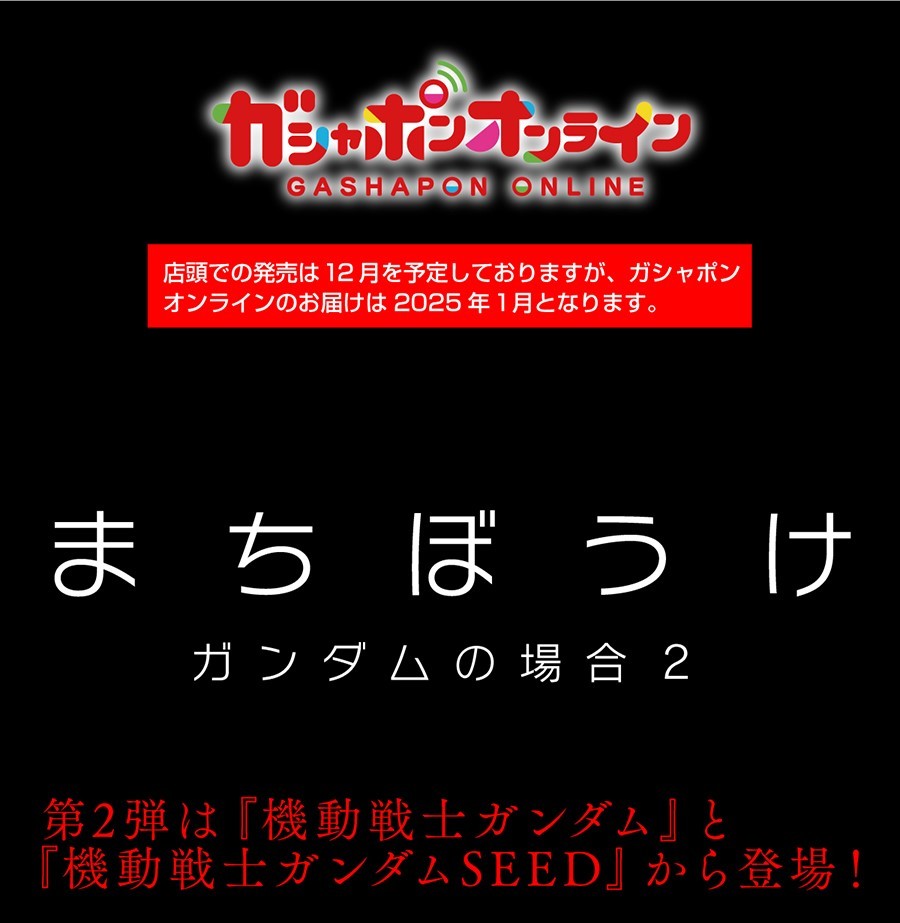 由日本萬代公司轉蛋玩具品牌 GASHAPON 發行、人氣的等待中(まちぼうけ)系列,繼出自《機動戰士鋼彈》的「等待中的機動戰士鋼彈」後,再度推出好評第二彈「等待中的機動戰士鋼彈 2」,一共有四種款式,參考售價為一轉 400 日圓,預計於 2025 年 01 月發售。