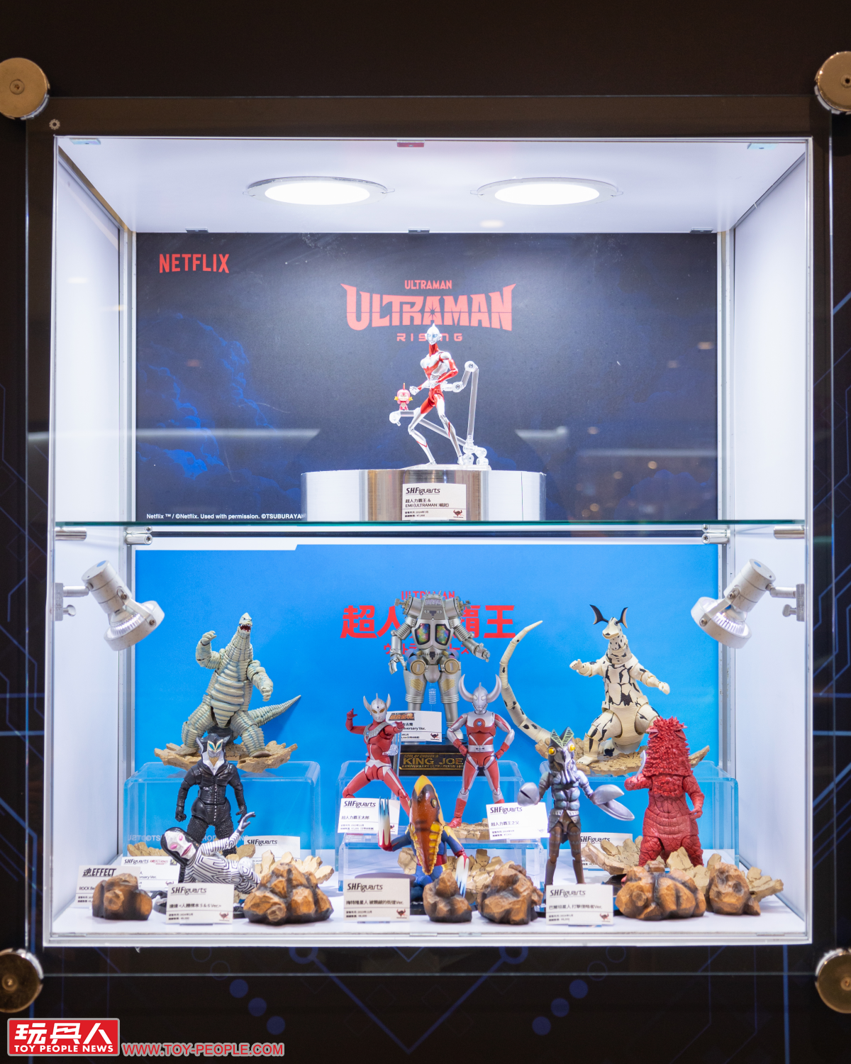 手扶梯上到 6 樓之後就可以直接看到寬敞開闊的展示空間啦~本次 TAMASHII FEATURE AREA 主打眾多 JUMP 的熱門 IP,包含《航海王》、《鬼滅之刃》、《七龍珠》、《死神》、《火影忍者》......等,而一直受到廣大玩具人喜愛的《哥吉拉》、《超人力霸王》、《機動戰士鋼彈》也有多款新品展示!