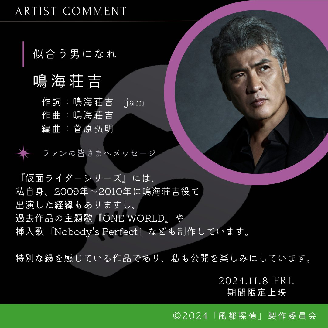 劇場版的主題曲「似合う男になれ」找來了原本《假面騎士W》鳴海莊吉演員的吉川晃司來演唱,連作詞作曲都親自參與,想必對粉絲來說是一大驚喜。