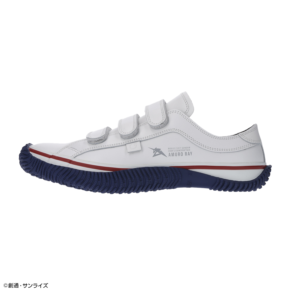 這次推出兩款配色為《機動戰士鋼彈 逆襲的夏亞》兩架招牌機體 : RX-93 ν鋼彈 ( Nu 鋼彈 ) 與 MSN-04 沙薩比,分別在色系以及鞋面上的細節都可以看到有個別的巧思在裏頭。鞋面採用真牛皮製作,搭配三段魔鬼氈調整鬆緊,整雙鞋子都在日本透過製鞋職人製作,讓你可以有最舒適的穿著體驗。
