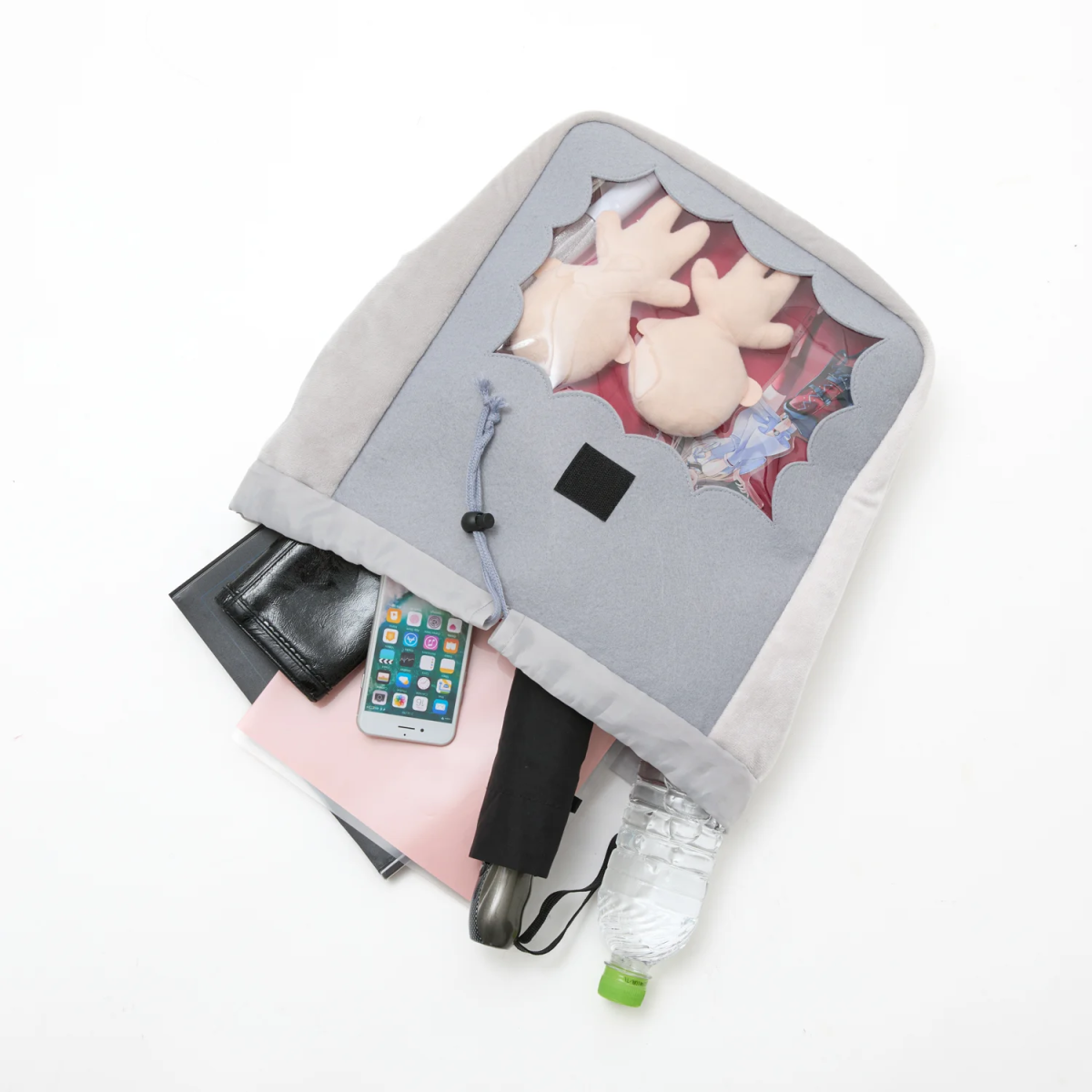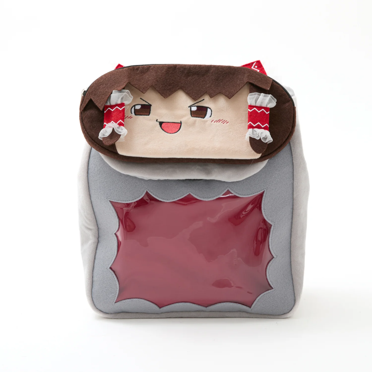 本體是一個抽繩後背包,上蓋的饅饅來靈夢其實是個以魔鬼氈固定的小包,以灰色跟紅色為基底。可以收納物品,整體尺寸不大,使用上可以搭載生活小物。