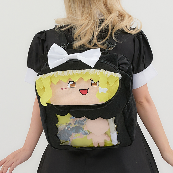 SuperGroupies 直接將當年的「饅饅來」形象直接製作成後背包,更結合當前方常風行的「推活」概念,讓包包前方以透明可見的方式,展示自己的推,包包上蓋更用直接用上饅饅來靈夢 & 魔理沙的造型,展現你至今在令和時代的仍然熱愛東方的忠誠。