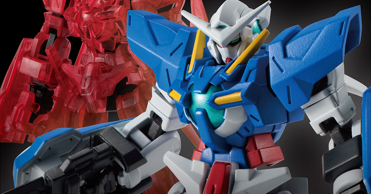 此次最新彈推出《機動戰士鋼彈00》中主角剎那初期駕駛的能天使鋼彈,在全高約 9 公分尺寸下賦予 38 處可動部位,並附有右腕可展開劍刃的 GN 劍、左腕搭載的 GN 盾牌、掛於兩側腰間的 GN 長刀/短刀。商品共推出兩種配色可抽取,包含一般配色與彷彿 Trans-Am 啟動後的透明紅配色。
