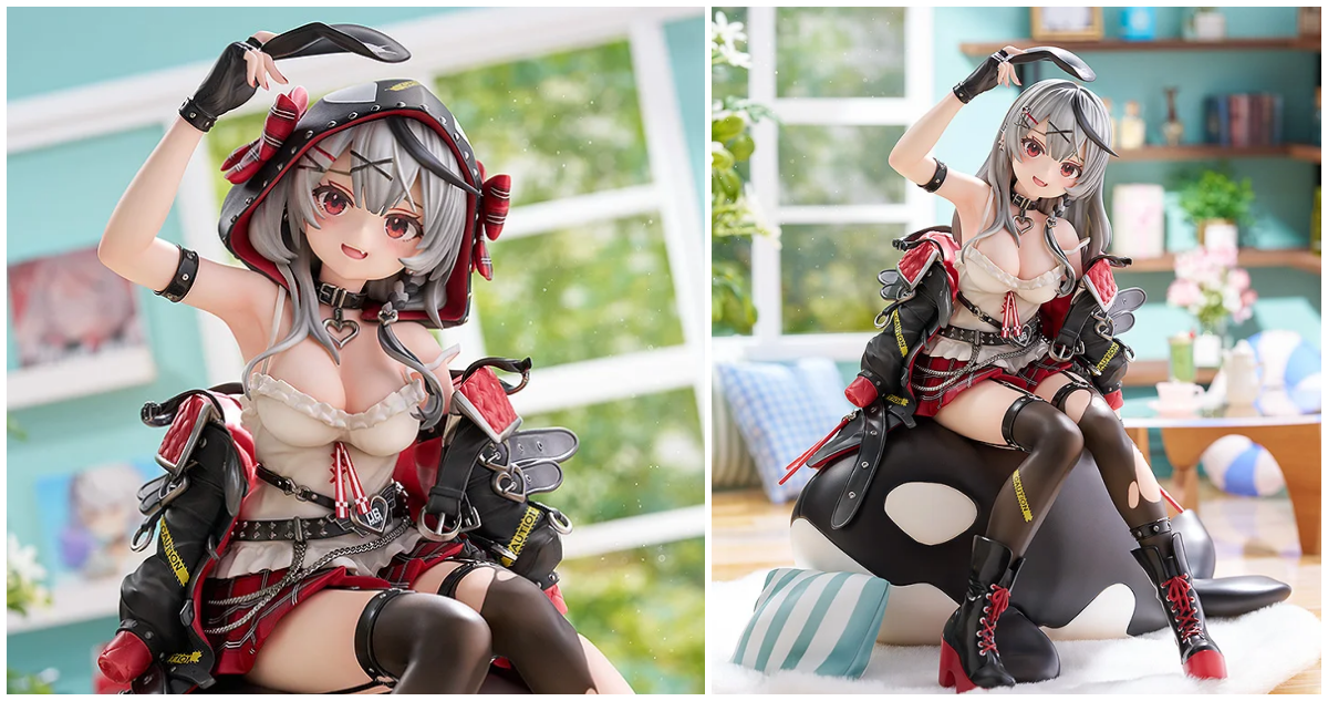 MAX FACTORY「沙花叉克蘿耶」1/6比例模型,尺寸約高 20 公分,將虎鯨坐在巨大虎鯨抱枕上的可愛造型立體化~底座鋪有白色的布質絨毛地毯,呈現出乾淨明亮的房間場景!在造型及色彩上重現穿著歌德龐克風格服裝的可愛造型,還原紅格紋百褶裙、腰間的鎖鏈與破洞褲襪等精緻的細節。肌膚的陰影塗裝強調柔軟,豐滿的上圍讓人目不轉睛!搭配臉上露出可愛小虎牙的小惡魔笑容,徹底擄獲飼育員!