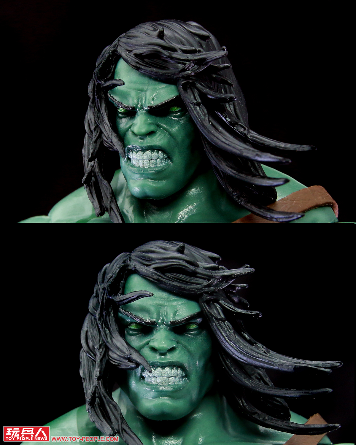 ▼另一顆頭雕則是咬牙翻白(綠?)眼加上長髮飄揚的版本。