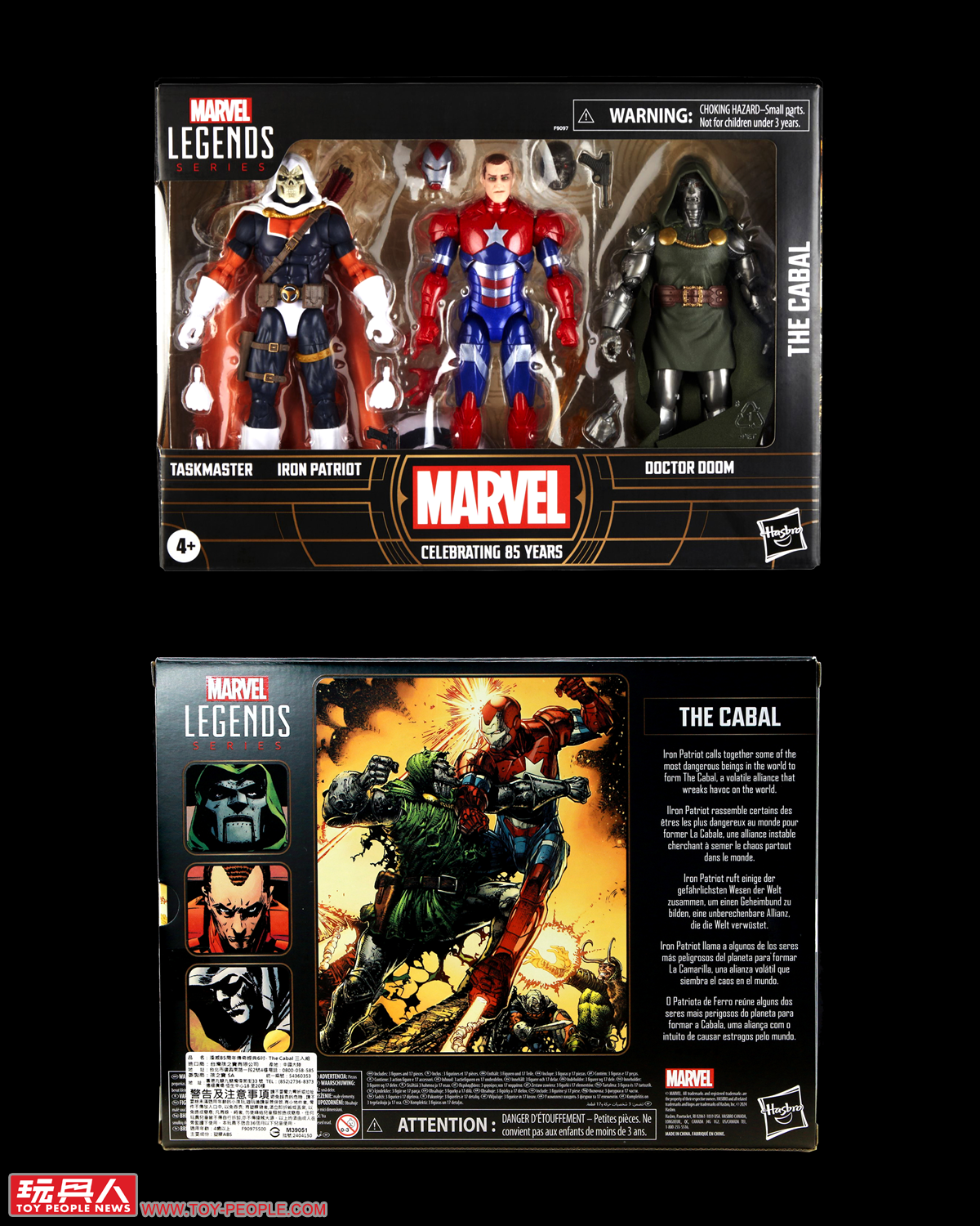 ▼「陰謀集團」(The Cabal)三人包,一鼓作氣收錄了黑暗王朝(Dark Reign)時期陰謀集團的三名重要成員,包括擅長複製他人戰鬥技巧的「模仿大師」(Taskmaster)、真實身分為諾曼·奧斯朋(Norman Osborn)的「鋼鐵愛國者」(Iron Patriot),以及魔法與科技一把罩的「毀滅博士」(Doctor Doom),可說是反派雲集的精選組合。
