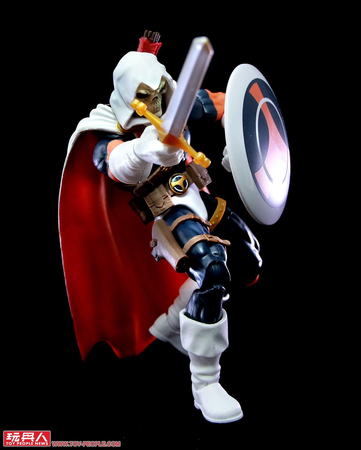 ▼模仿大師,最大的賣點在於本次採用了全新的無軸素體,不僅美觀,在可動度的表現上也是有目共睹,附屬了長劍、圓盾、弓、箭矢、手槍作為其武器。