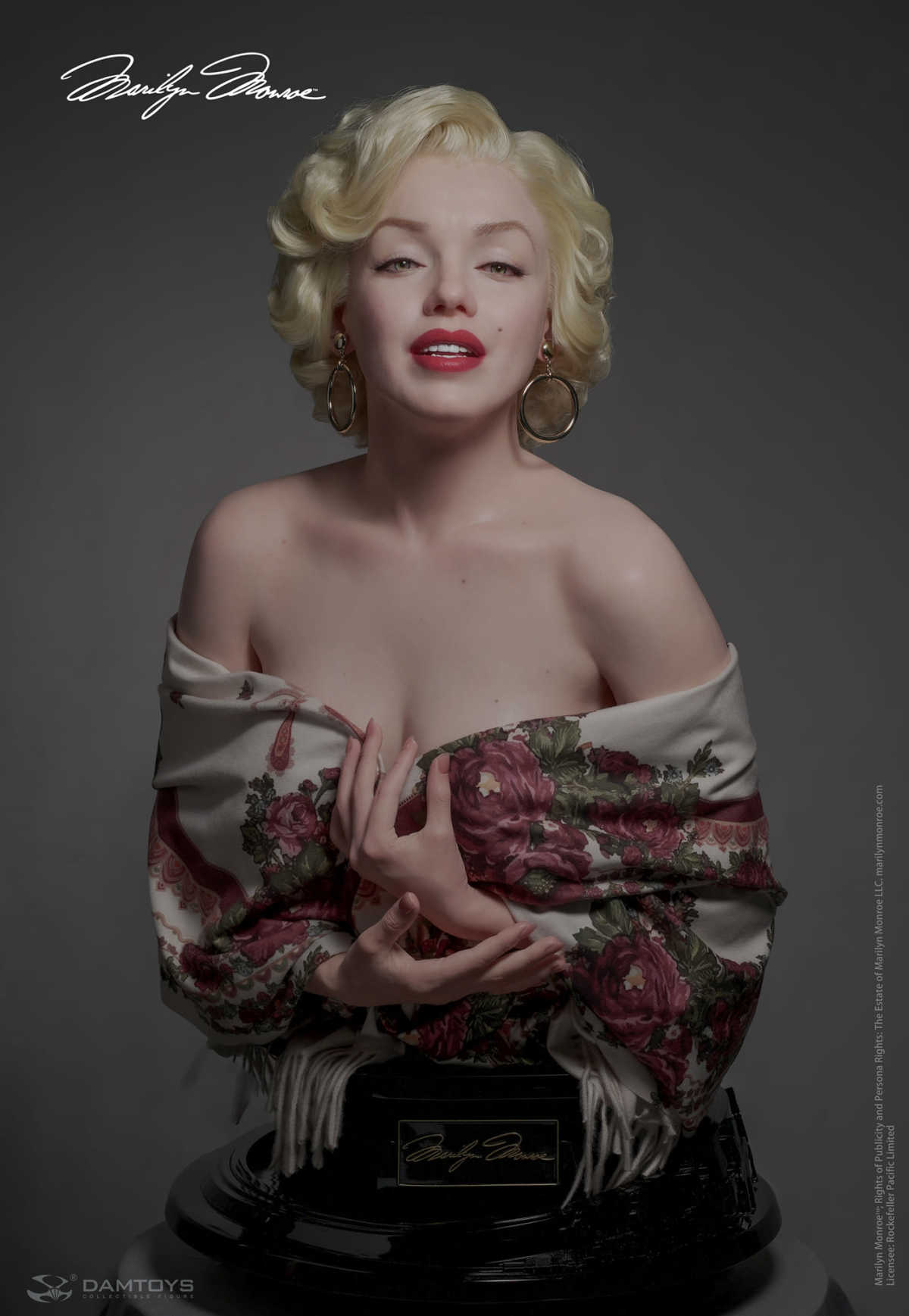 風靡世界的一代性感象徵瑪麗蓮·夢露如今以極像真的等身比例胸像化!本作是依照攝影師 Nicholas Murray 於 1952 年拍下的照片為題製作,高度來到 87 公分,再現了極具獨特魅力且經典的迷離眼神,微微上抬的下巴、代表性的痣、裸露的雙肩與彷彿十分柔嫩的鉑金矽膠(Platinum silicone)肌膚、淡金色且帶著自然捲度的高溫絲髮,以及輕撫服裝的雙手,用盡全力在每一處都施以細緻做工,搭配襯托她魅力的服裝、首飾,力求瑪麗蓮·夢露的永恆之美,底座則可以看到瑪麗蓮·夢露的簽名名牌。