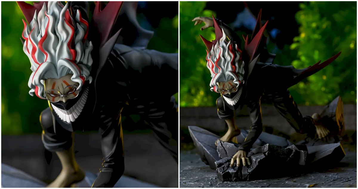 SEGA景品「Luminasta 厄卡倫(變身型態)Vol.1」,尺寸約高 15 公分,以使用高速婆婆能力的變身造型登場,仔細刻劃出狂野的白髮、如牙齒般的面具等,並以伏地動態姿勢呈現,搭配底座的碎裂石塊,讓人感受到戰鬥中的臨場感!眼鏡部分使用透明材質製作,制服的漸層塗裝與隨著動作而揚起的躍動造型,非常有氣勢!