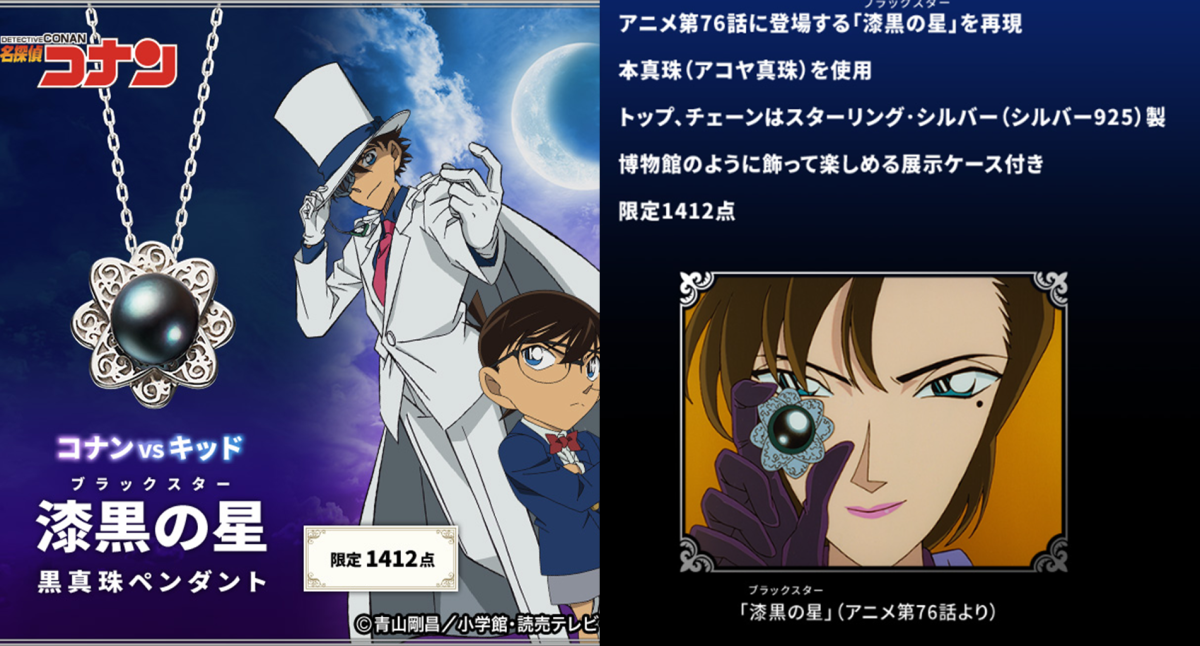 今日 ( 9/11 ) 宣布將以《名偵探柯南》動畫中出現過的稀世珠寶「漆黑之星」 商品化,由職人手藝完美打造成精美的項鍊飾品。售價為 32,780 日圓,限量 1,412 副,目前已於官網預購。