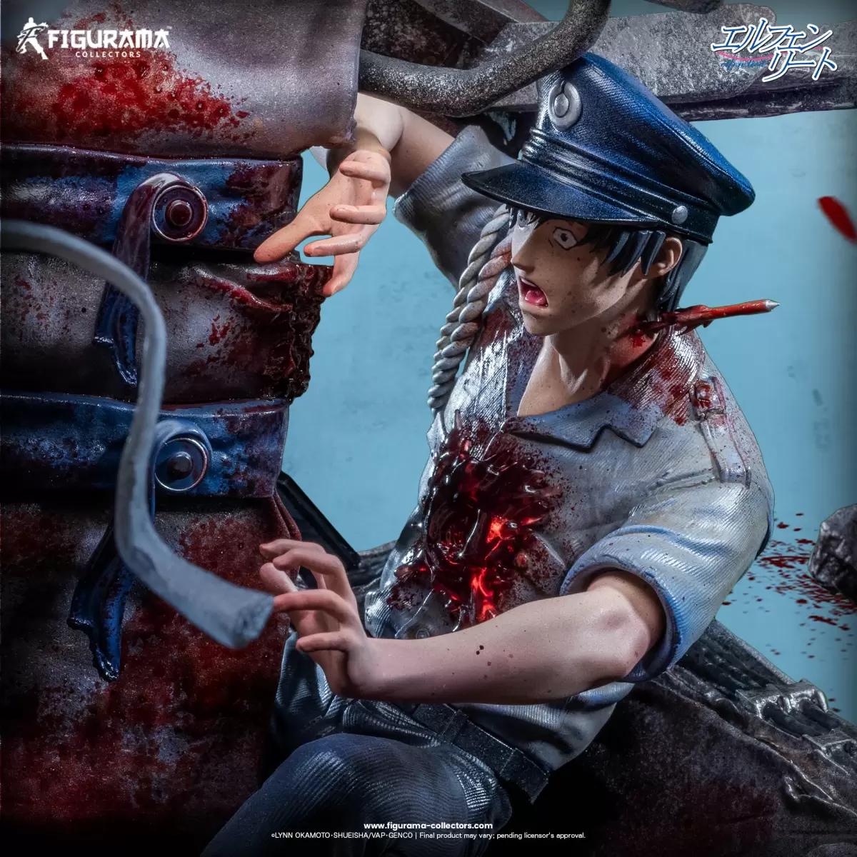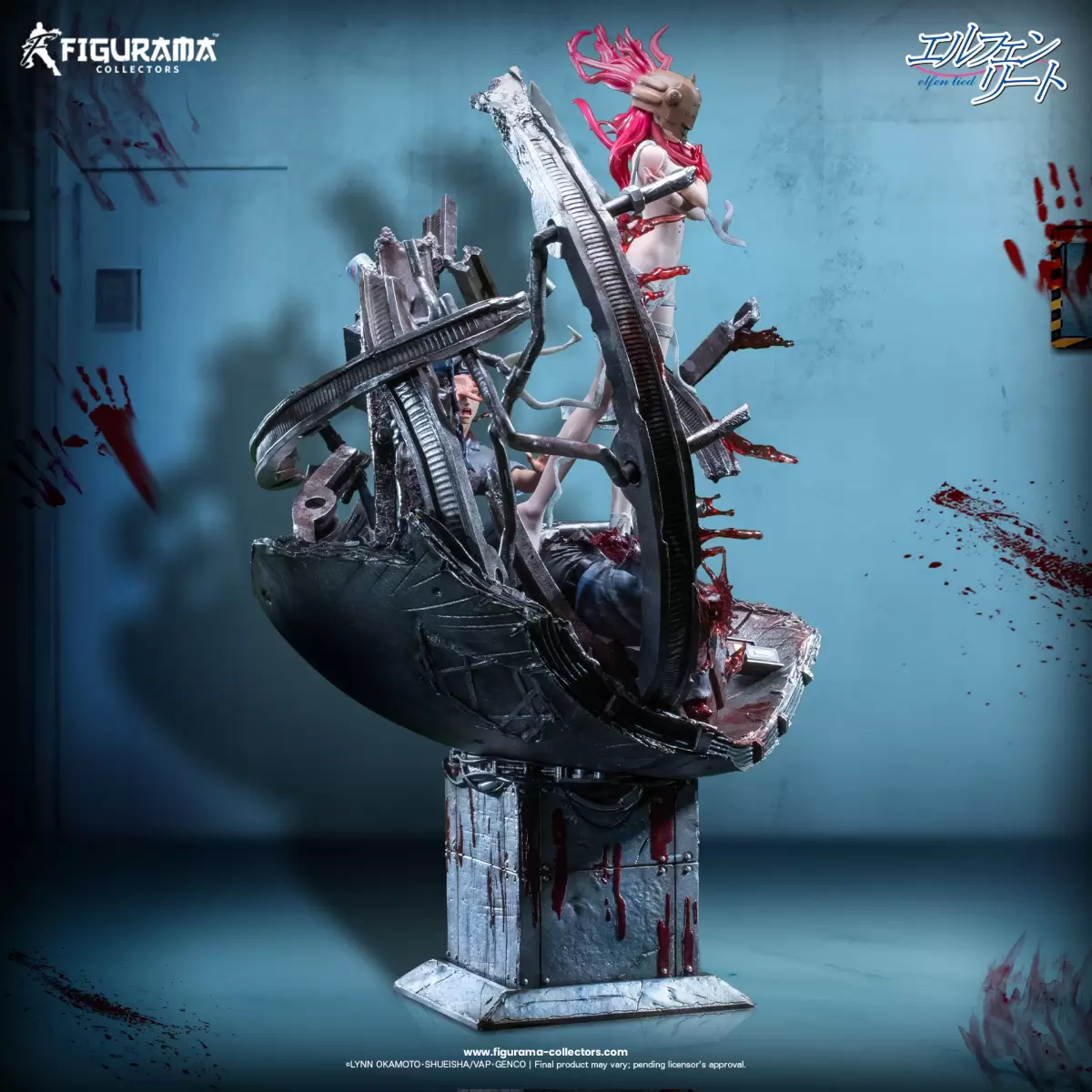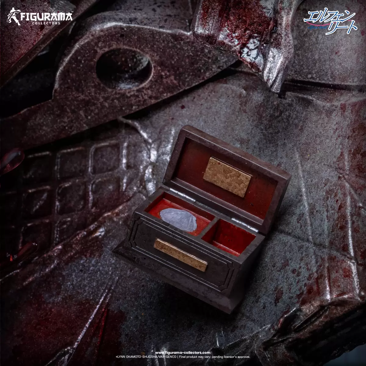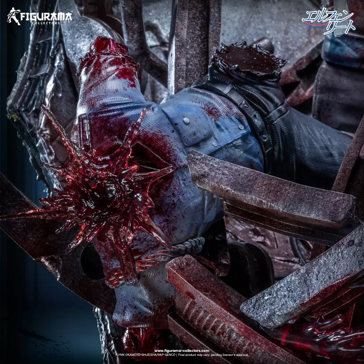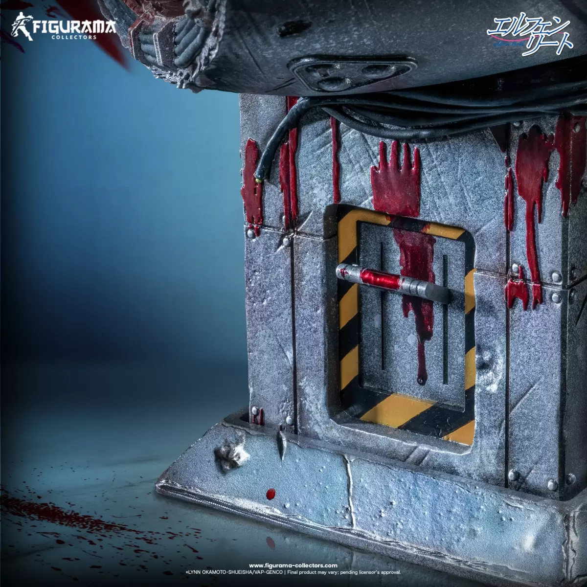 「妖精的旋律 露西 20TH ANNIVERSARY EDITION」1/6 比例場景雕像,以動畫開頭令人印象深刻、超狂暴的逃脫研究室場景為靈感,刻劃出露西身上包覆的繃帶散開、研究裝置也被擊碎的震撼造型。露西粉色的頭髮飄逸,閉起眼睛的樣子看起來冰冷而平靜;研究室的裝置被徹底毀壞,並透過紅色的透明樹脂呈現所有擋道的人的鮮血,四處噴濺與沾染...展示出露西無與倫比的破壞力,徹底重現令人畏懼的血腥一幕。