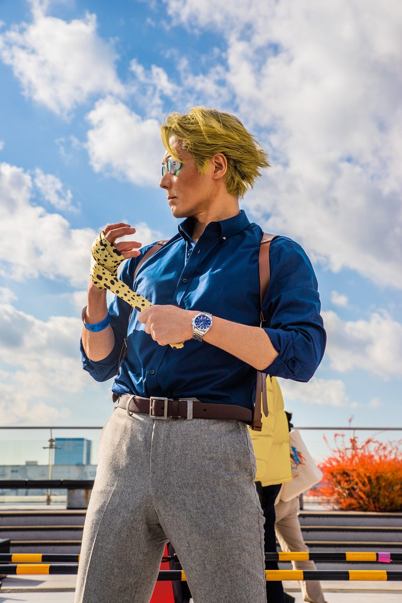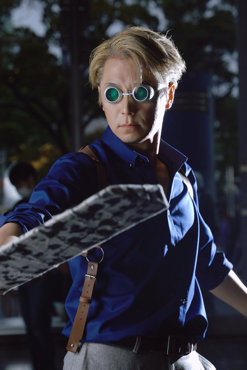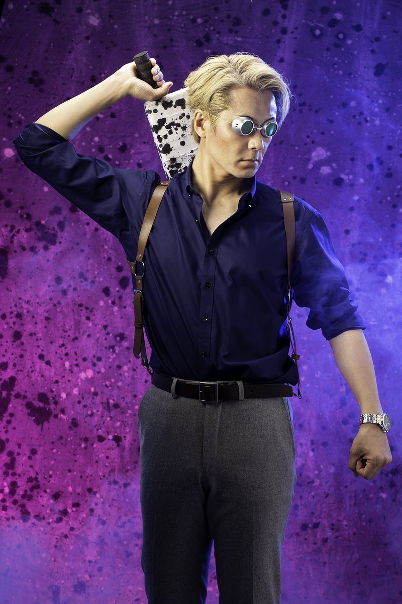 透過七海招牌的無鏡腿眼鏡,搭配輝@Joker穿出帶有合身感的襯衫,手上操著鉈刀的姿態,梳起的金色油頭,真的讓人感覺還原度十足,氣勢更是從照片就能體驗。