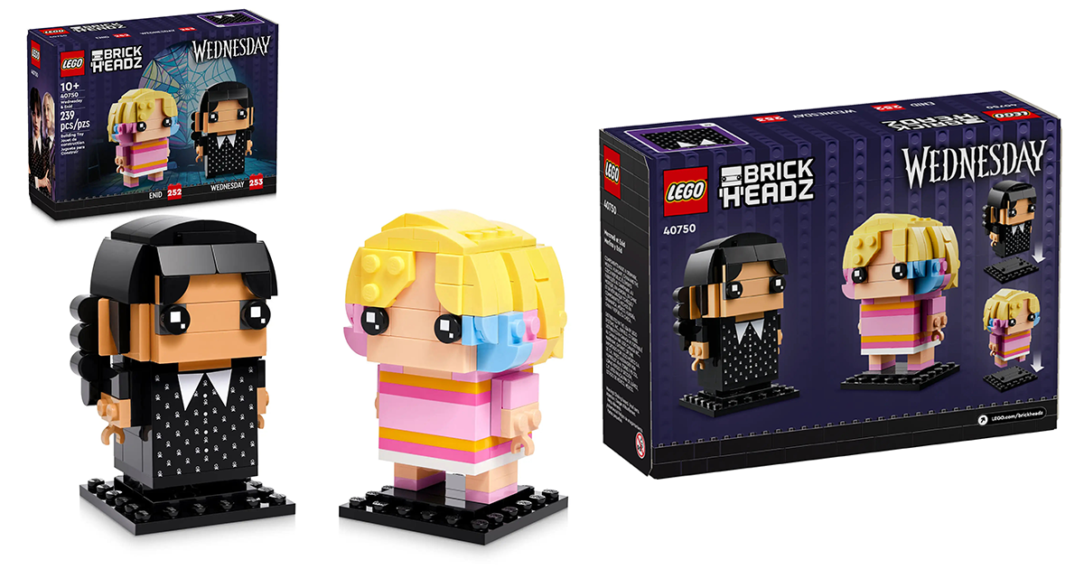丹麥 LEGO 玩具公司除了有編號 76780、76781 這兩款出自美國恐怖喜劇影集《星期三》的盒組之外,以大頭造型為賣點、採用 Q 版比例重新詮釋角色的「BrickHeadz」系列也有一款編號 40750 的《星期三》主題新作「星期三&依妮」(Wednesday & Enid)!預計 2024 年 10 月 1 日開始發售,建議售價為 19.99 美金。