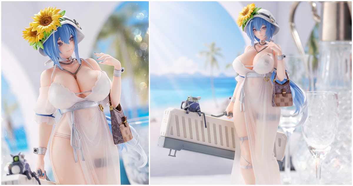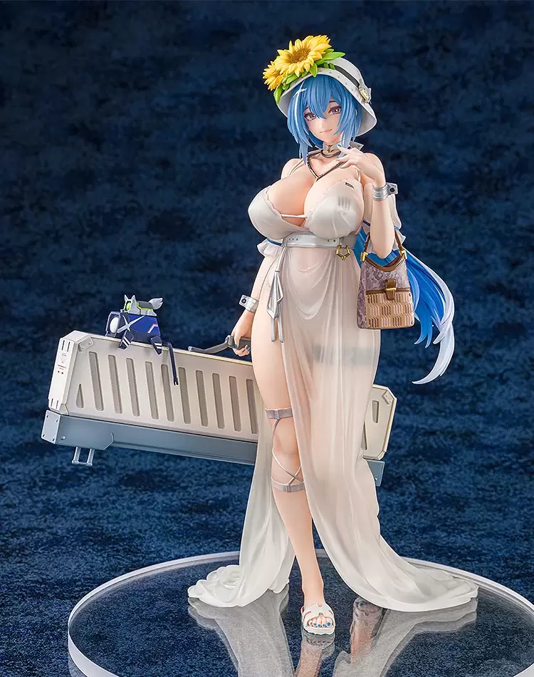 「DP-12 熙光寓言Ver.」1/7比例模型,將 2022 年實施的泳裝主題裝扮「熙光寓言」造型立體化!尺寸約高 25 公分,以主題裝扮插畫為原圖,徹底還原充滿魅力與遐想的DP-12~使用透明材質打造,強調透明感的側邊開衩連衣裙,透過皺褶營造出極輕薄的材質,並