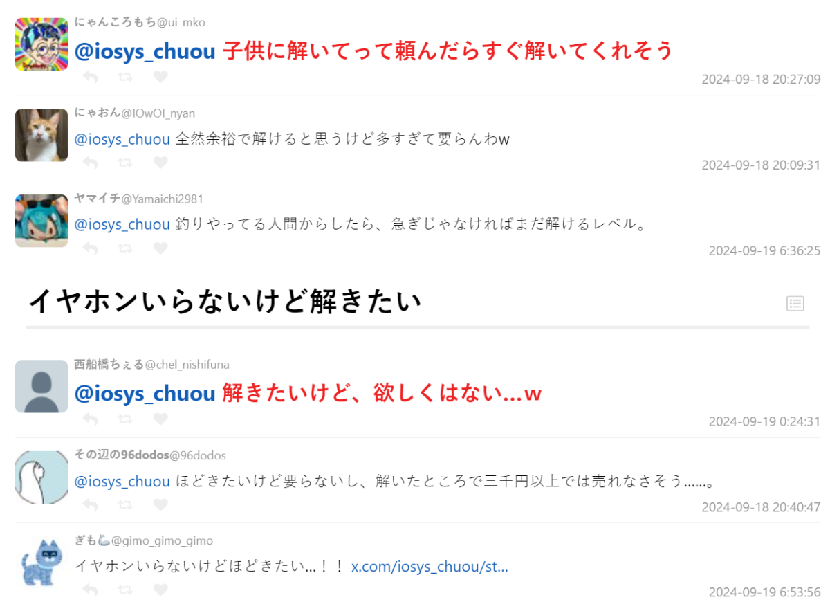 但在日本 X 上,有推主分享了自己在二手電器行看到的奇妙商品,這個叫做「連店員都無法解開的中古耳機線團」,一個要價 3000 日圓,引起網民熱議,讚嘆店家莫名的創意概念,更有人想買來解開。