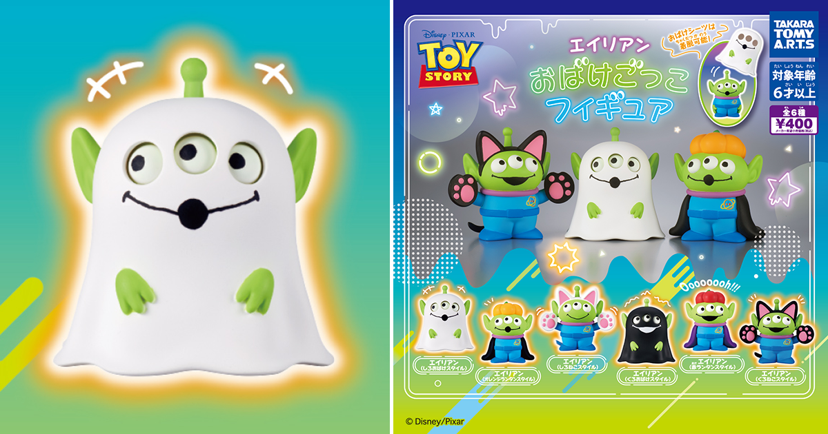 日本 TAKARA TOMY 公司旗下玩具品牌 T-ARTS 將在本(9)月發售出自迪士尼皮克斯的最新商品「三眼怪 扮鬼角色模型」(エイリアン おばけごっこフィギュア)轉蛋!一共有 6 種款式可以收集,建議售價為每轉 400 日幣。