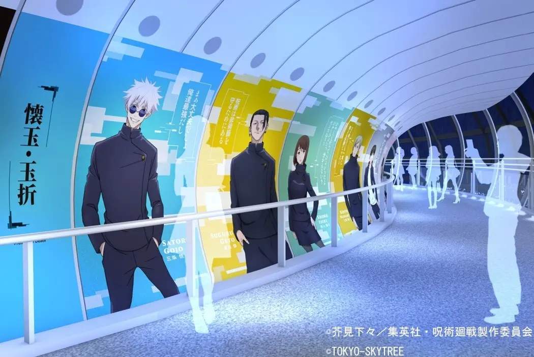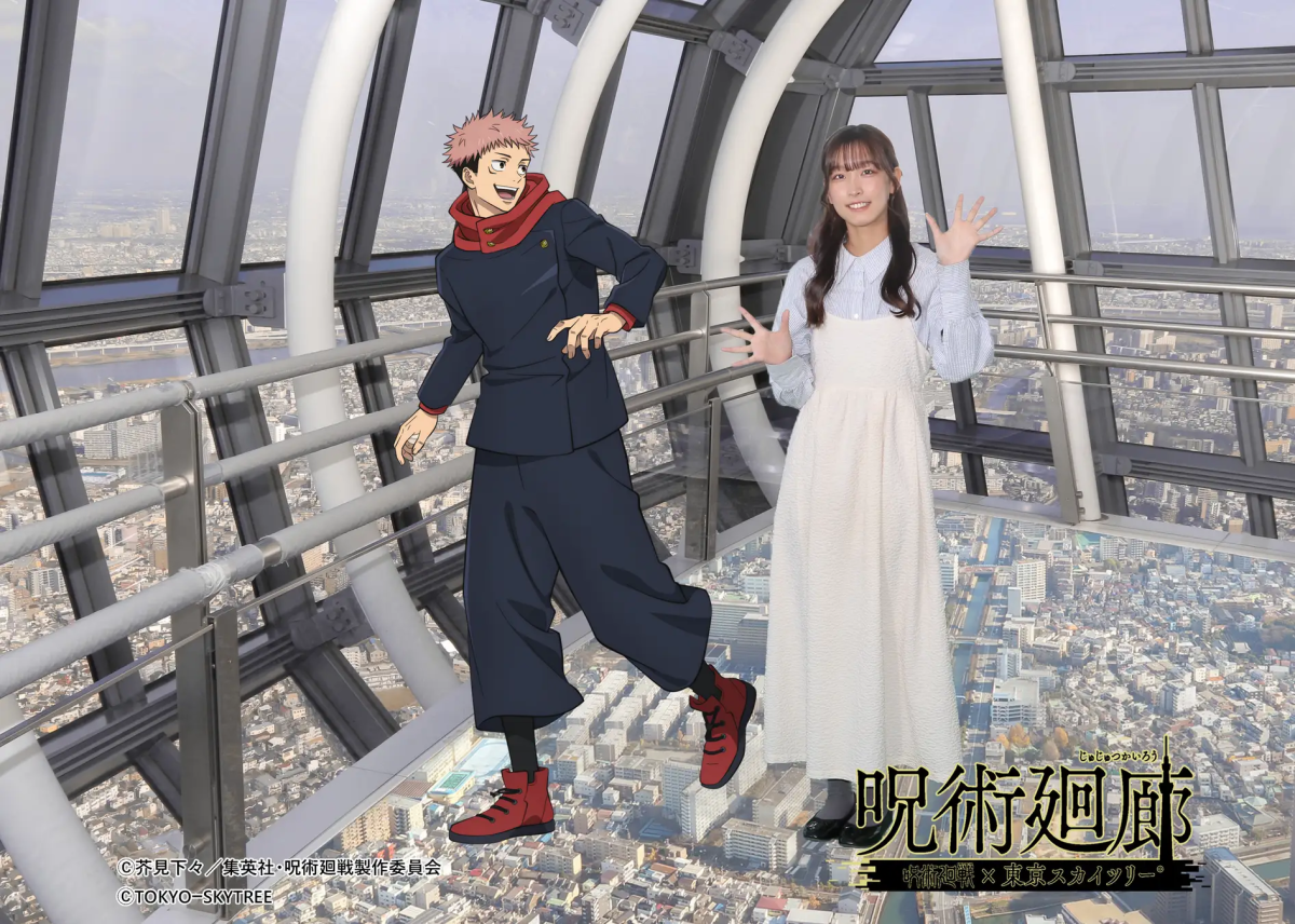 近日宣布與漫畫即將邁入完結的《咒術迴戰》聯手推出「TVアニメ「呪術廻戦」×東京スカイツリー(R) 呪術廻廊」 的聯名企劃,在距地面約 450 公尺以上的「天望迴廊」舉辦動畫世界觀的展覽,大量巨型擺設讓粉絲可以拍照與感受作品的氛圍,該展覽將於 2024 年 9 月 25 日~ 12 月 22 日舉辦。