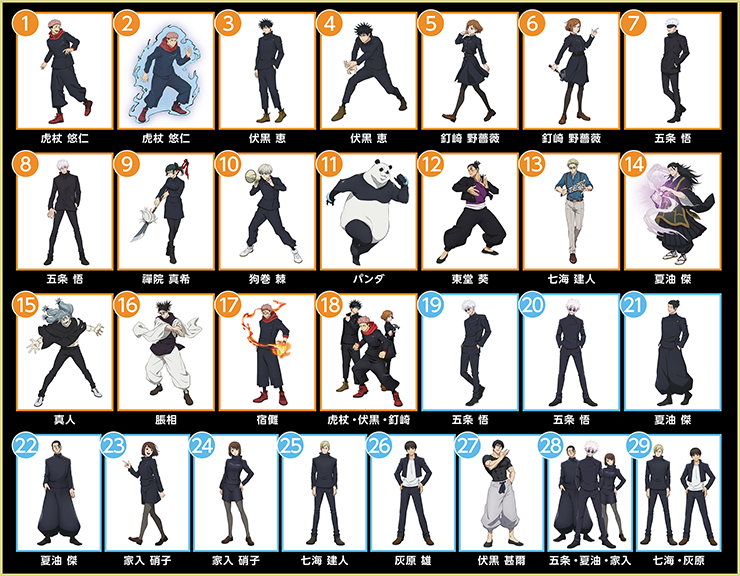以所有咒術迴戰中各角色所使用的術式搭配人物呈現,完全採用全新的插圖讓粉絲可以與其合照。