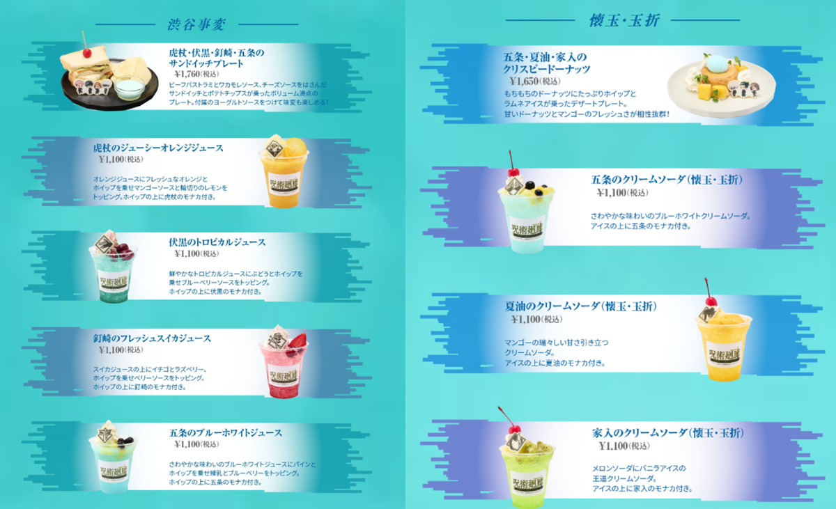 有著本次合作特別繪製的人物等比例大小背板與場景提供粉絲拍照,剛好分成第一季與第二季「懷玉.玉折篇」的主角群,背後就是高空下望去的東京街景,不論白天或晚上來各有不同風貌。