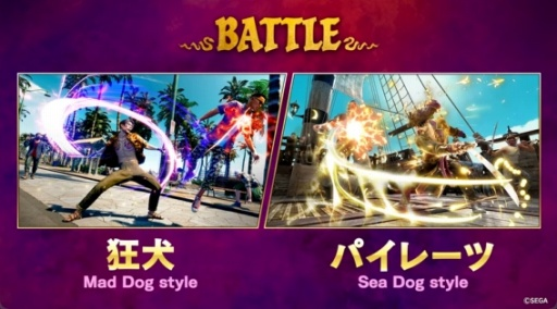 官方也同時揭露了遊戲開發中的戰鬥畫面,模式上有 Mad Dog 與 Sea Dog 兩種風格,具體上沒有細部說明,不過看來有點類似陸地跟海上的不同戰鬥樣態。