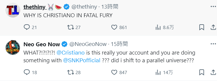 雖說 SNK 官方社群並沒有為此貼文宣傳,但光在 X 擁有超過 1 億追蹤的 C羅的帳號發出合作影片,這流量跟影響力就不需多說了。