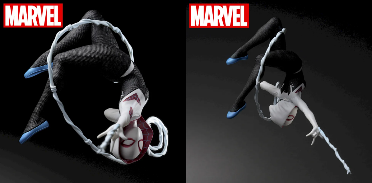本次的「MARVEL ACT/CUT 女蜘蛛人(關·史黛西)」高約 14 公分,以她在漫畫中經典的蜘蛛戰服造型打造,兜帽內部的蛛網紋與戰服黑色部分的網格質感都被細節再現,並製作出後空翻跳躍射出蛛絲的華麗姿態,纏繞在身邊的蛛絲讓整體視覺上的動態感更加強烈,展現出她同時身為舞者與蜘蛛人的獨特魅力!