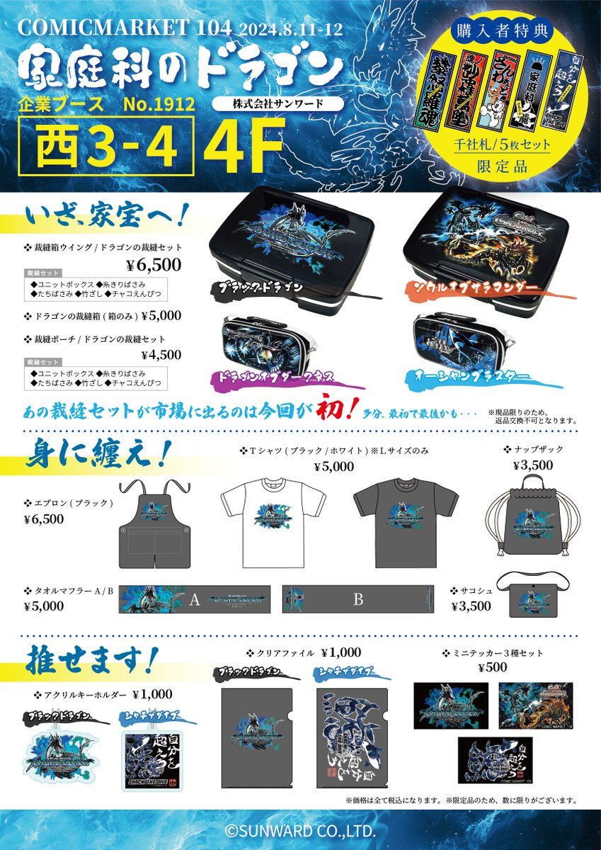 sunward 專門製作學生通販販售的用品,自家有不少設計角色,其中最受孩童的喜愛的就屬「家政科的龍」系列商品,以帥氣的龍插圖獲得好評,不論印在書包、筆袋任何學校文具用品都是中小學生的最愛。