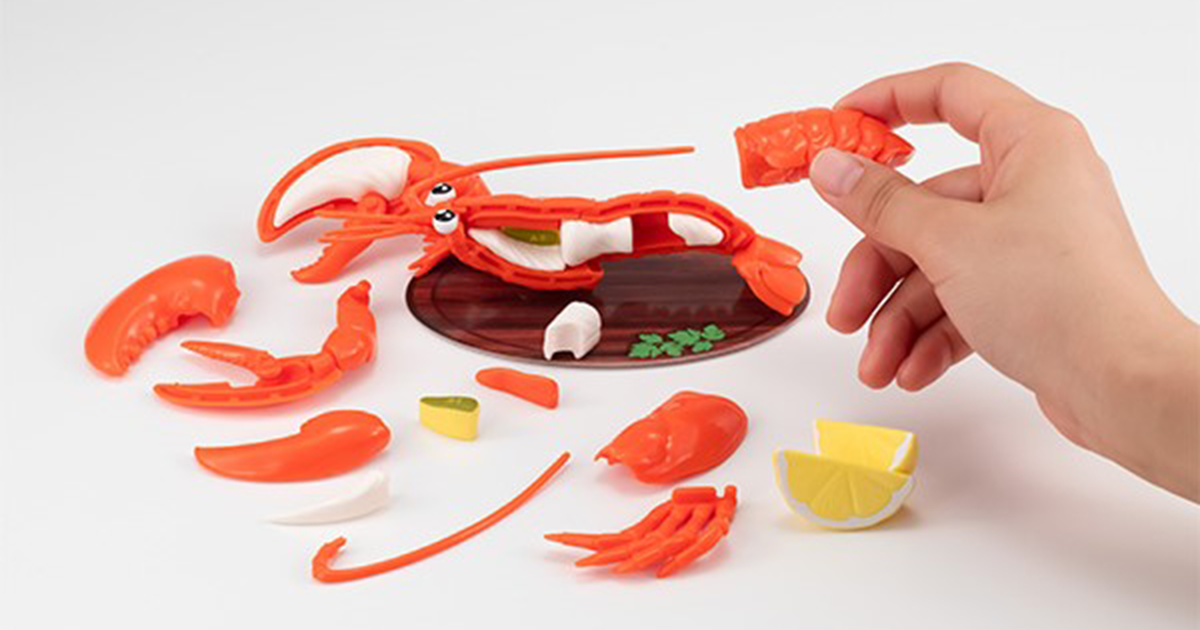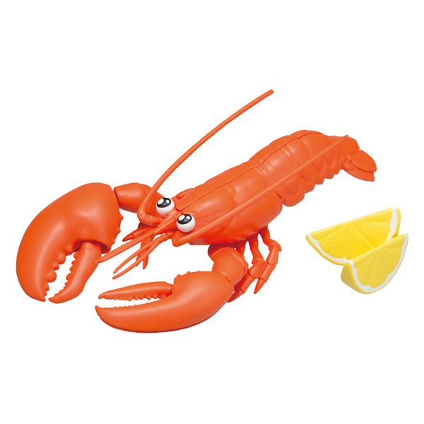 因此玩具不僅能夠展示螯龍蝦的剖面構造,也能實際扭蝦頭、開蝦螯,實際體驗分解龍蝦的樂趣。配件中更附上餐盤、檸檬等龍蝦料理的必備配件,再現餐桌上令人食指大動的整尾螯龍蝦大餐!