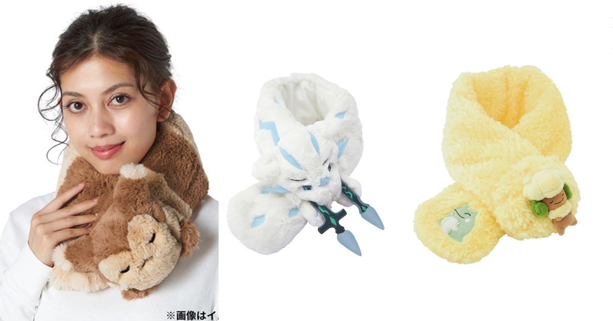 近日公開了準備入秋的必備單品,以寶可夢為主題的「造型毛絨圍巾」,共推出三款寶可夢 : 大尾立、風妖精與古劍豹,售價為 5,500 日圓,將於 2024 年 9 月 26 日正式在各地寶可夢中心上架。