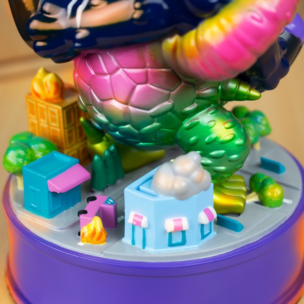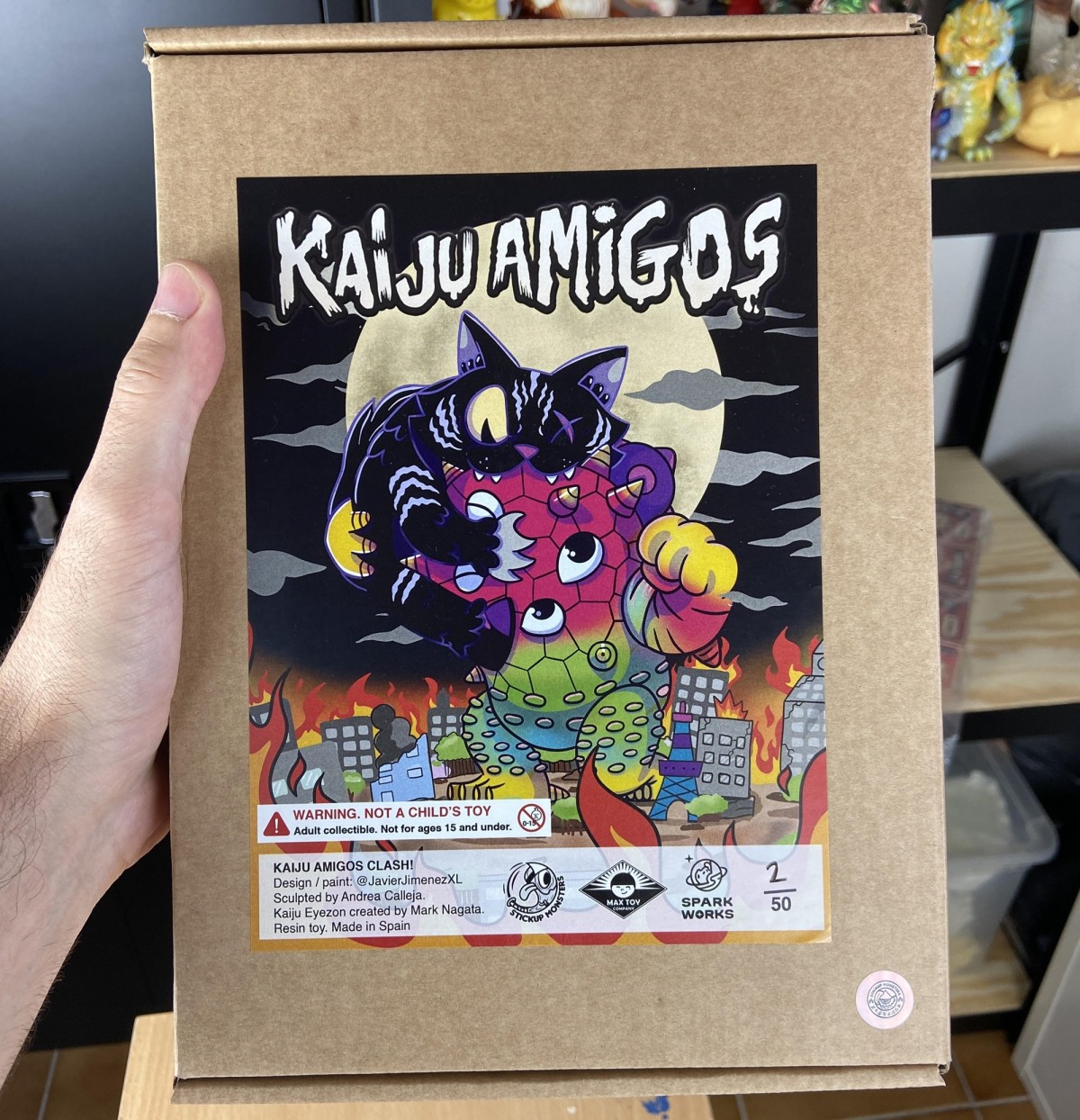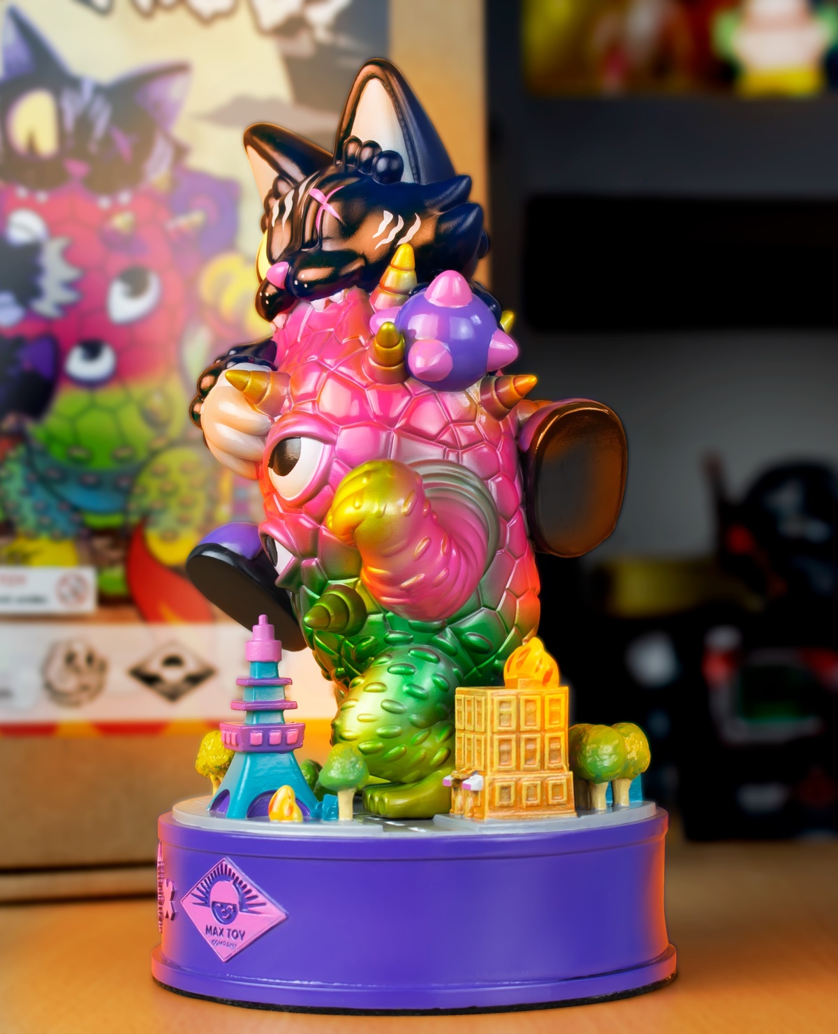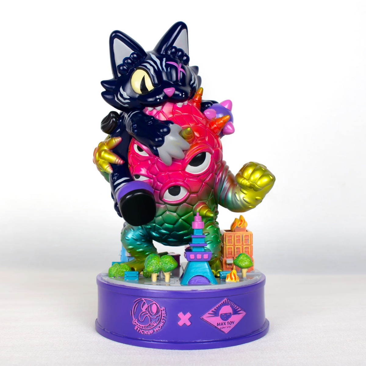 這次的「怪獸大戰」是 Javier Jiménez 和 Max Toy 創辦人 Mark Nagata 友誼的象徵,將他們各自最具人氣的角色——貓妖 Wananeko 和怪獸 Eyezon 帶入一場激烈的對決場景。巨大化的貓妖與突變怪獸,在日本的城市街頭進行狂暴戰鬥,彼此沉浸於戰鬥的樂趣中,不知不覺中將都市徹底摧毀!這一場面充滿戲劇性和視覺張力,完美展現了兩位藝術家心中的怪獸宇宙。
