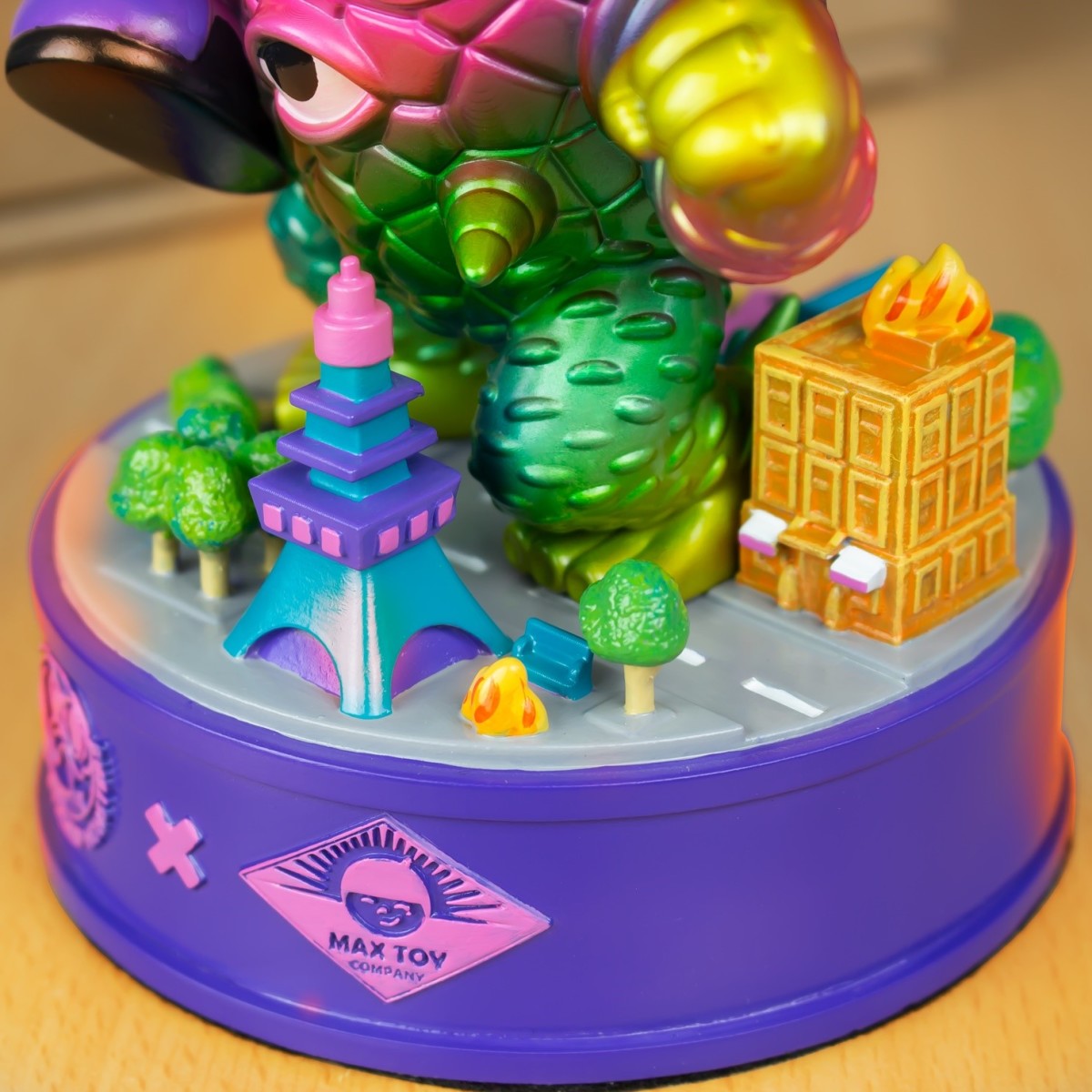 5.精緻場景底座:作品附有特殊設計的日本城市風格底座,上面印有 Stickup Monsters 及 Max Toy 的 Logo 浮雕,象徵著兩位設計師的深厚友誼與合作歷程。