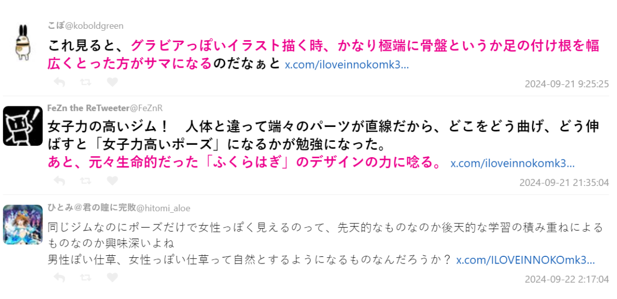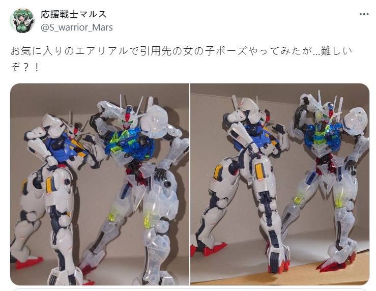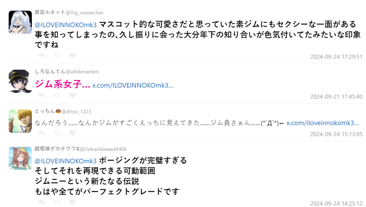 推主這個吉姆是在二手買取店 Hard Off 買到的 300 日圓二手品,想說便宜就拿來玩玩,沒想到突發奇想用上這種「女子氣息」滿分的姿勢覺得玩得不亦樂乎,分享到 X 上廣受迴響也就樂此不疲了 XD。