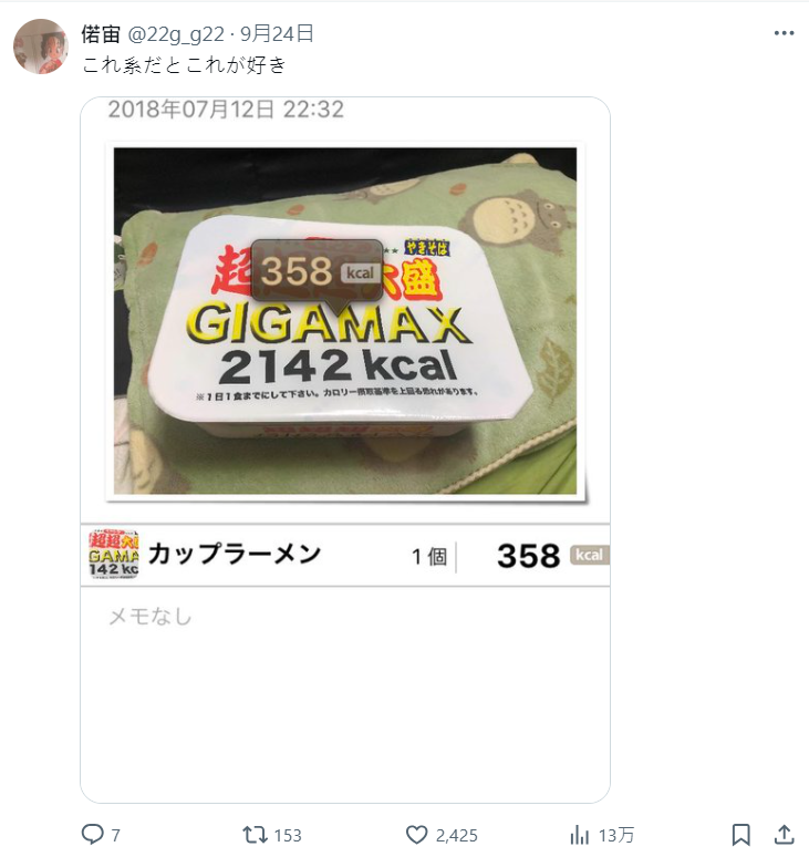 ▼ 一份超大份量的即食炒麵,標榜 2142 大卡,在偵測下居然只有 358...