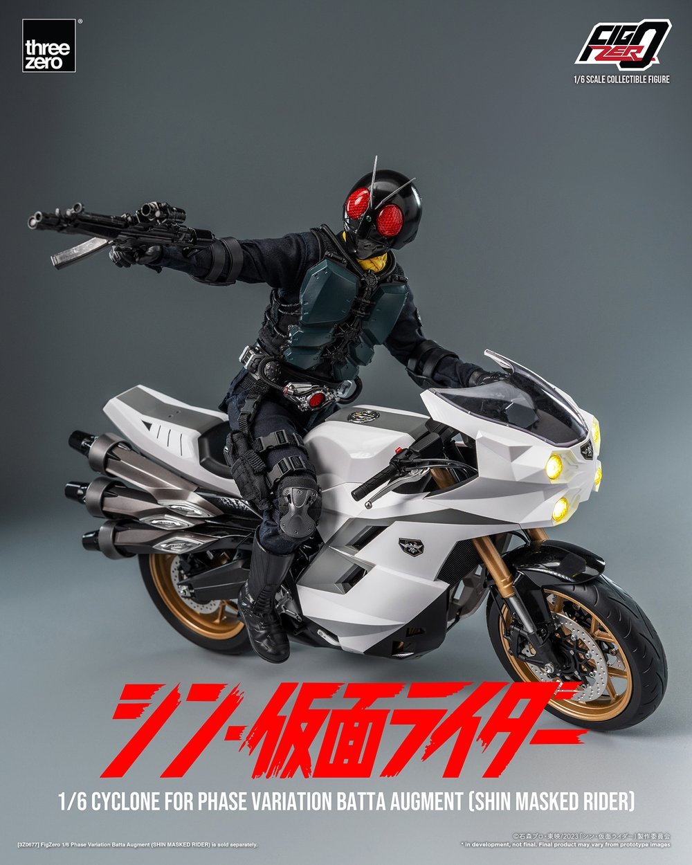 由香港玩具品牌 threezero 所推出的 1/6 比例可動人偶系列『FigZero』系列繼大量產生型多形性蝗蟲強化人後,再度發表了出自《新・假面騎士》的最新商品「大量產生型多形性蝗蟲強化人用旋風號」預計於 2025 年第一季發售的消息。