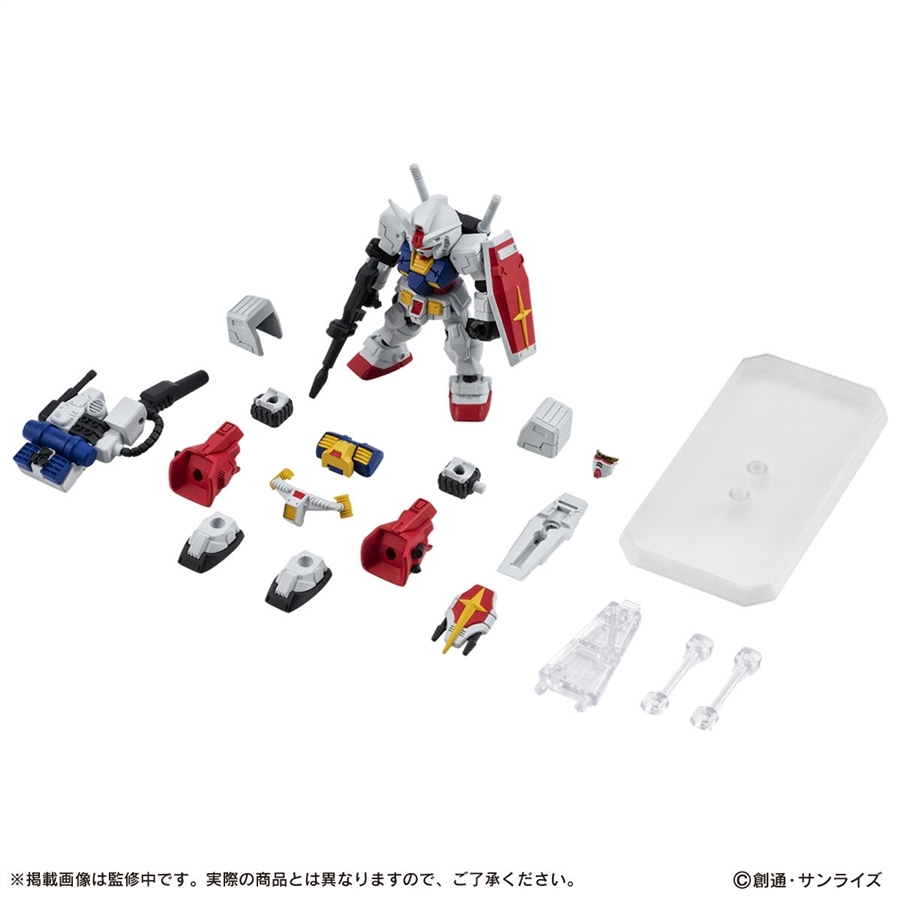 「MOBILE SUIT ENSEMBLE EX52 全備型鋼彈」延續系列特徵的設計風格,在全高 6.5 公分尺寸下製作出精密細節,再現肩部加農砲、二連裝光束步槍、大型背包與全身增設裝甲。配件內附臉部替換零件可再現《模型狂四郎》中的笑臉眼,全身武裝也能全部拆卸,藉由替換零件方式再現新規造型的「RX-78-2 鋼彈」本體。
