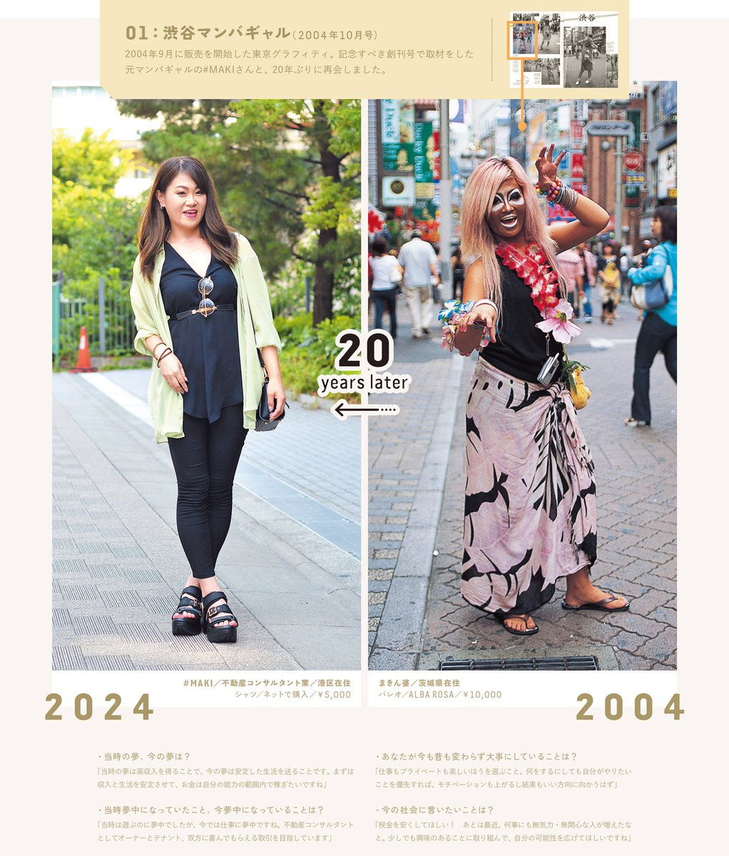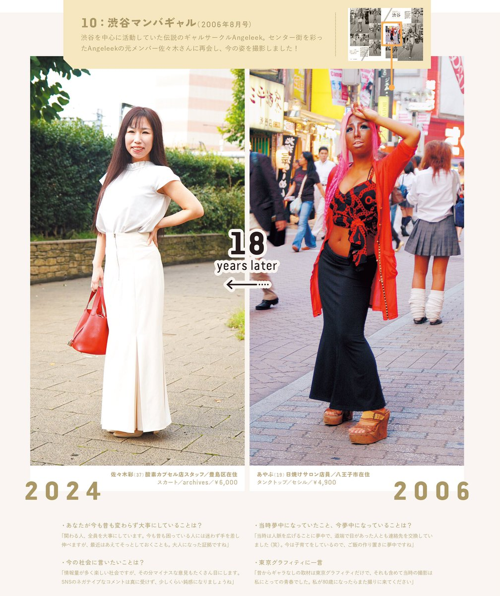 另一位當年 19 歲在澀谷擔任日曬沙龍店員的女孩,現在過了 18 年從過去的浮誇辣妹風,現在已經成為一個美容養生艙的職員,穿著上也展現出上班族女性的幹練跟氣質。也表示過去辣妹的自己是青春的記憶,沒想到多年後還可以出現在街拍,希望自己到 80 歲都可以登上這樣的媒體。