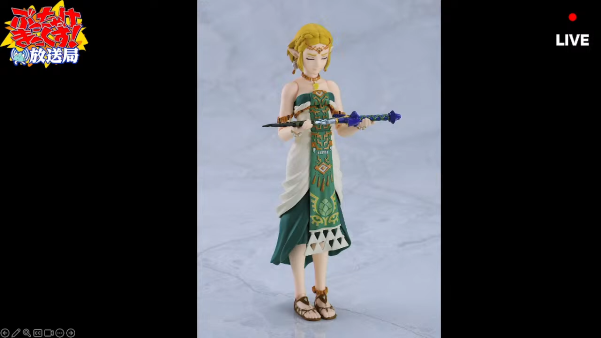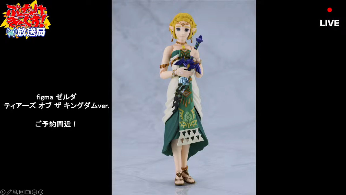 「figma 薩爾達 王國之淚ver.」將她跨越時空至海拉魯王國建國之初、與左納烏族國王勞魯等人相遇後的造型立體化。從目前公開的試作品可以看見,全身除了運用 figma 專用關節零件賦予可動外,也透過精密的造型刻畫與豐富色彩塗裝,再現服裝上的左納烏圖騰。配件則公開了遭瘴氣侵蝕而毀損的「大師之劍」,可再現遊戲中令人印象深刻的捧劍姿勢。