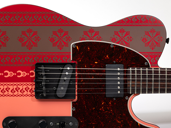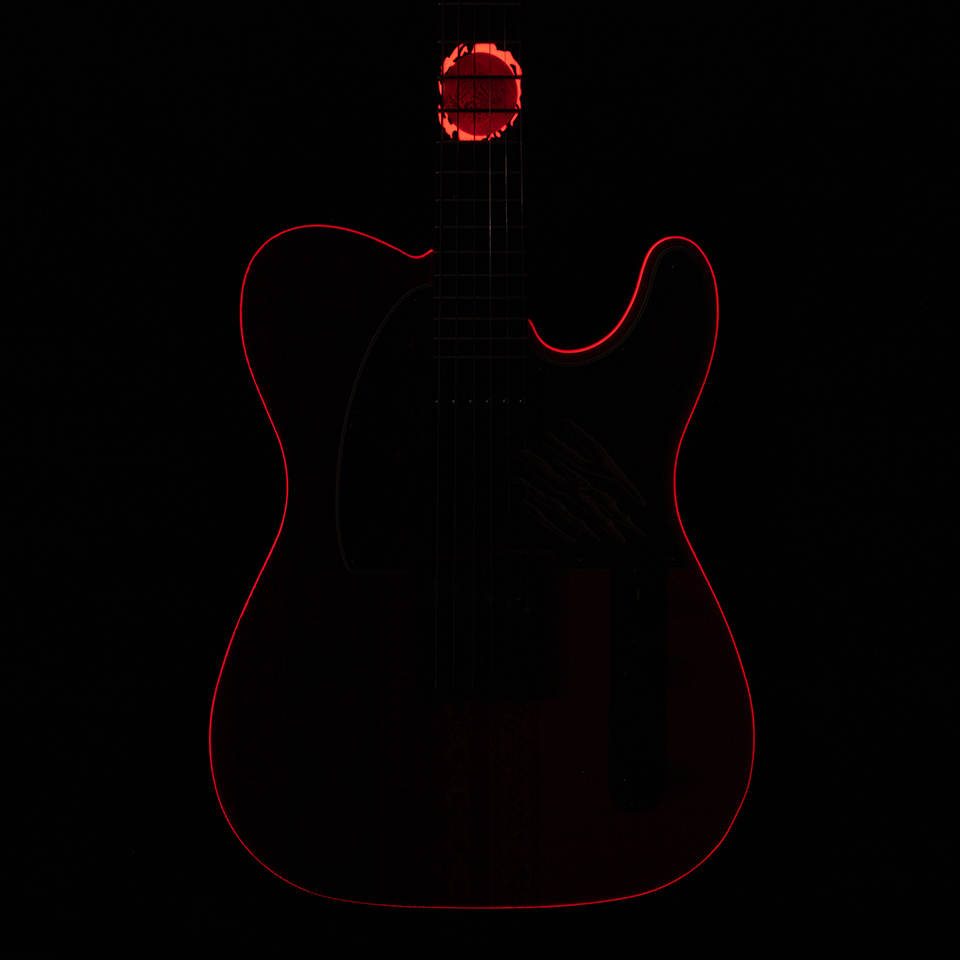 這次聯名也用上 Fender 招牌的 Telecaster 打造出『Monster Hunter Rathalos Telecaster®』,並用上「雄火龍」為概念的設計,包括吉他面板的民族風圖騰、指版中段與面板背面都有著雄火龍的圖案。連色系都完美打造出雄火龍的氣息,絕對是一款一款獨一無二的吉他。