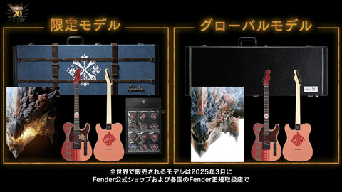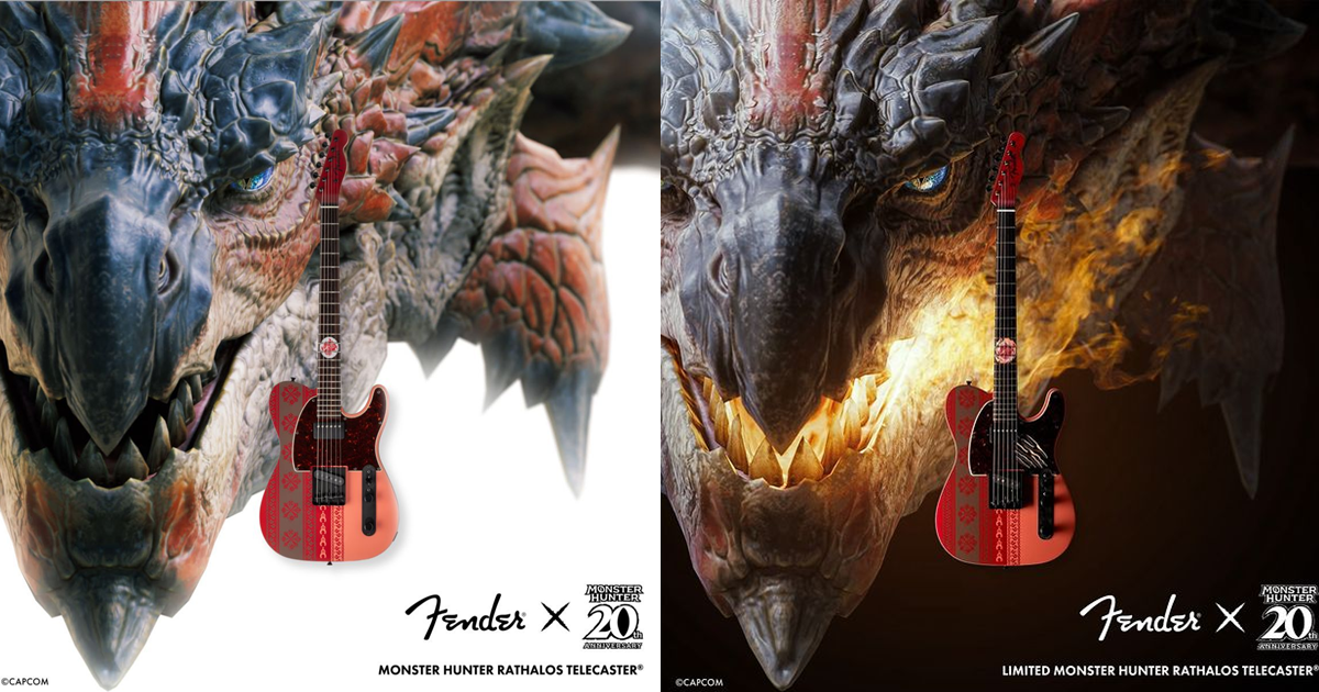 近日宣布與美國樂器廠牌 Fender 合作,推出 20 周年的紀念聯名吉他,結合 Fender 優異的樂器設計品味加上魔物獵人的「雄火龍」為概念完整打造設計,將於 2025 年 3 月正式販售。