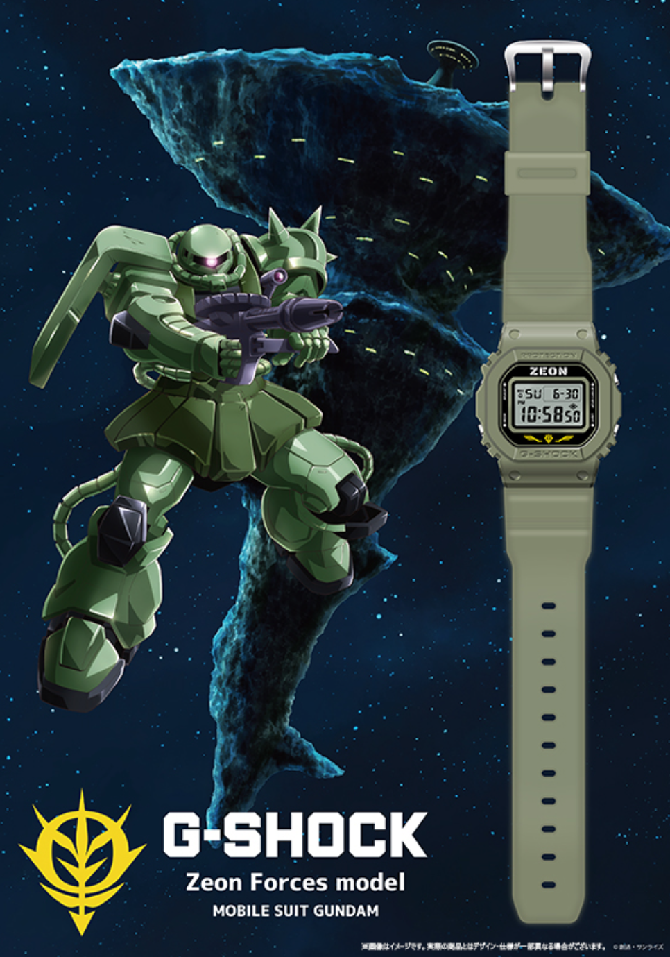 近日宣布與《機動戰士鋼彈》展開合作,發表了以鋼彈粉絲俱樂部(GFC)專屬的「G-SHOCK 吉翁軍樣式手錶」,也是俱樂部限定的第二款手錶。售價為 22,000 日圓,將於俱樂部獨家開賣。