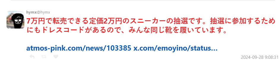 網友也指出,由於這雙鞋定價約 2 萬日圓,但轉售是可以喊到 7 萬日圓以上的價格,所以店家才設立這樣的規範,讓所有排隊的人都穿上指定款式。