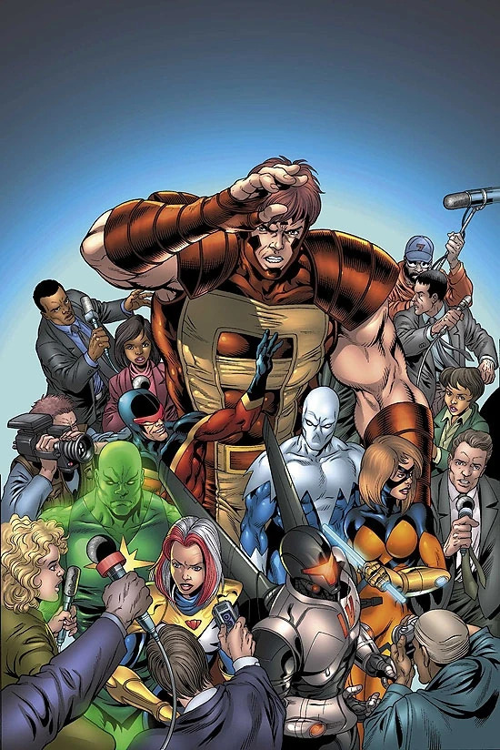 這支隊伍包括領隊「公民V(Citizen V)」、科技專家Techno、巨人「阿特拉斯(Atlas)」、控制聲波的「鳴鳥(Songbird)」、穿著噴射機甲的「馬赫-1(MACH-1)」以及類似驚奇隊長的「隕星(Meteorite)」。